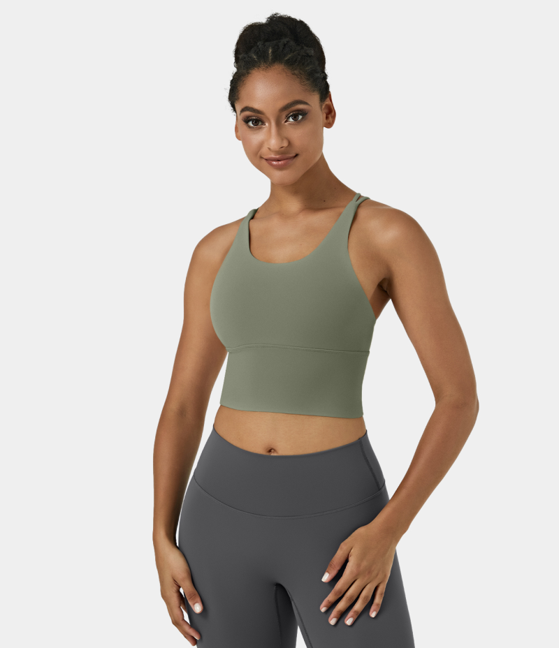 :: Halara In My Feels Low Support High Neck Longline Yoga Sports Bra Women's Tops Playground - Moss Green | AJHDVLP-09