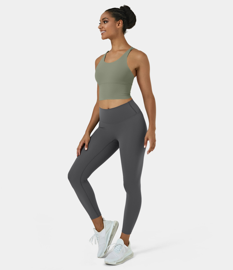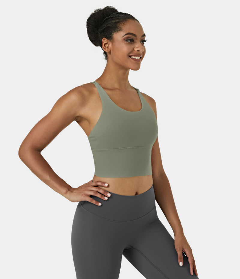 :: Halara In My Feels Low Support High Neck Longline Yoga Sports Bra Women's Tops Playground - Moss Green | CPYNDHG-36