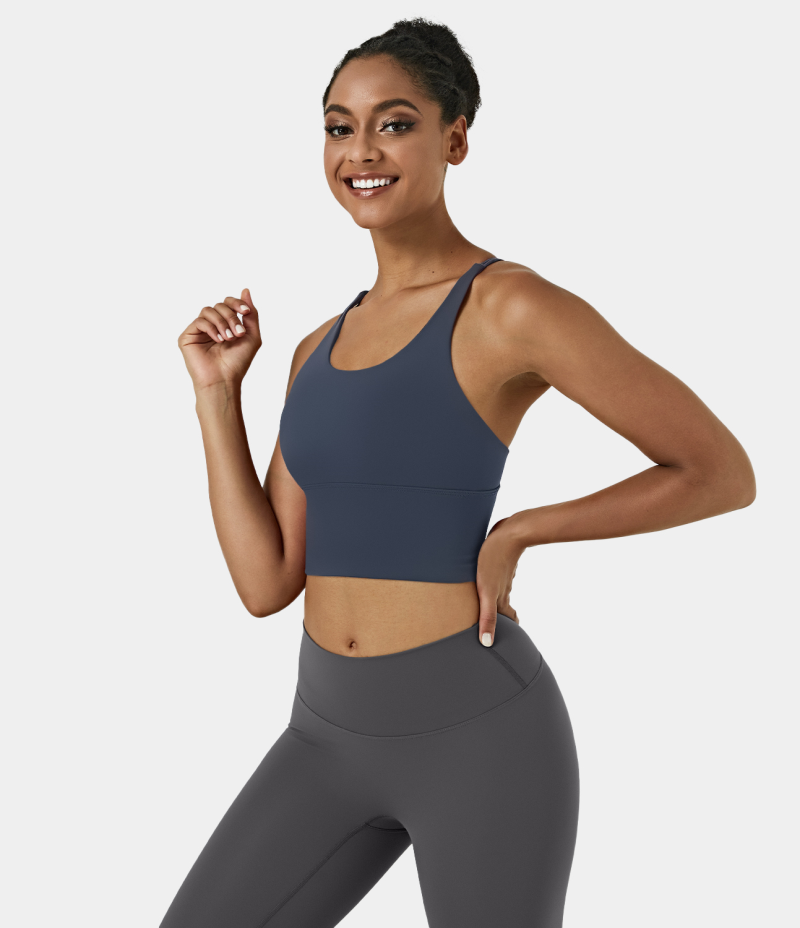Halara In My Feels Low Support High Neck Longline Yoga Sports Bra Women's Tops Up All Night - Lilac Grey | QXDOZER-53