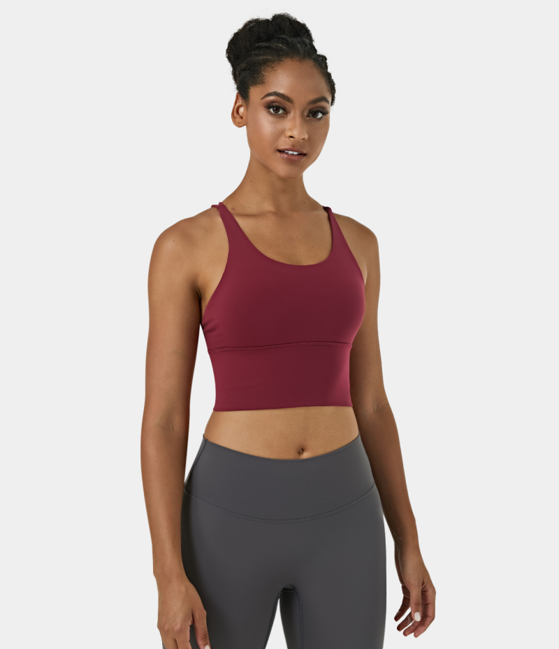 :: Halara In My Feels Low Support High Neck Longline Yoga Sports Bra Women's Tops Wild One - Scarlet | FOSLVXW-03