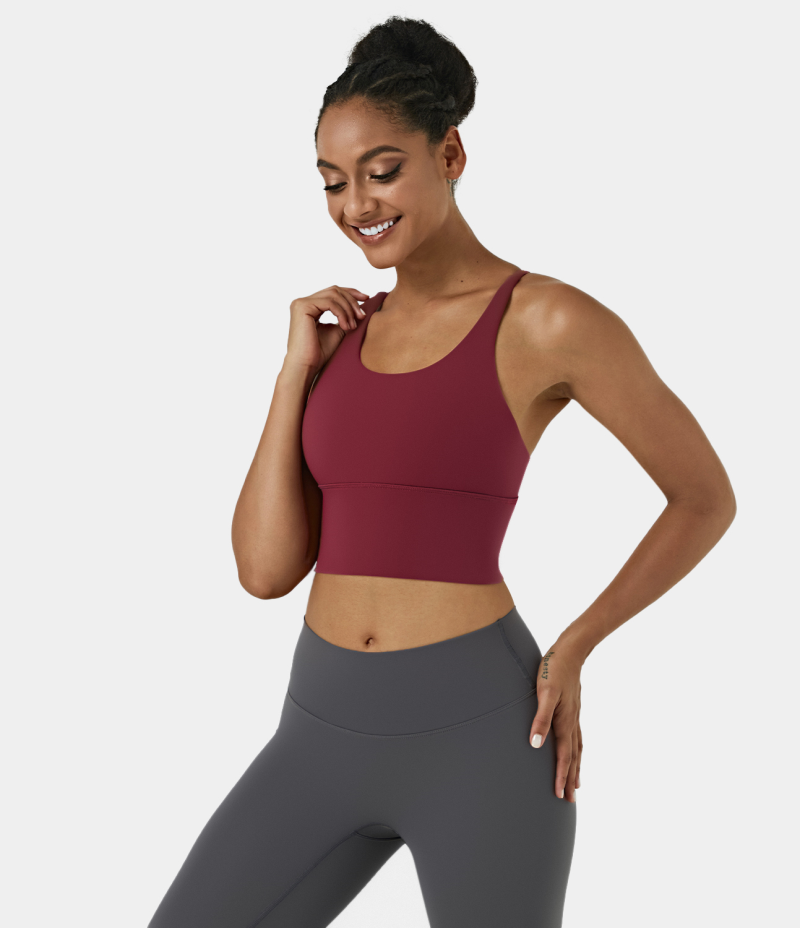 Halara In My Feels Low Support High Neck Longline Yoga Sports Bra Women's Tops Wild One - Scarlet | FOSLVXW-03