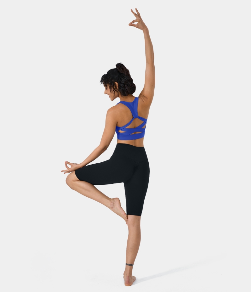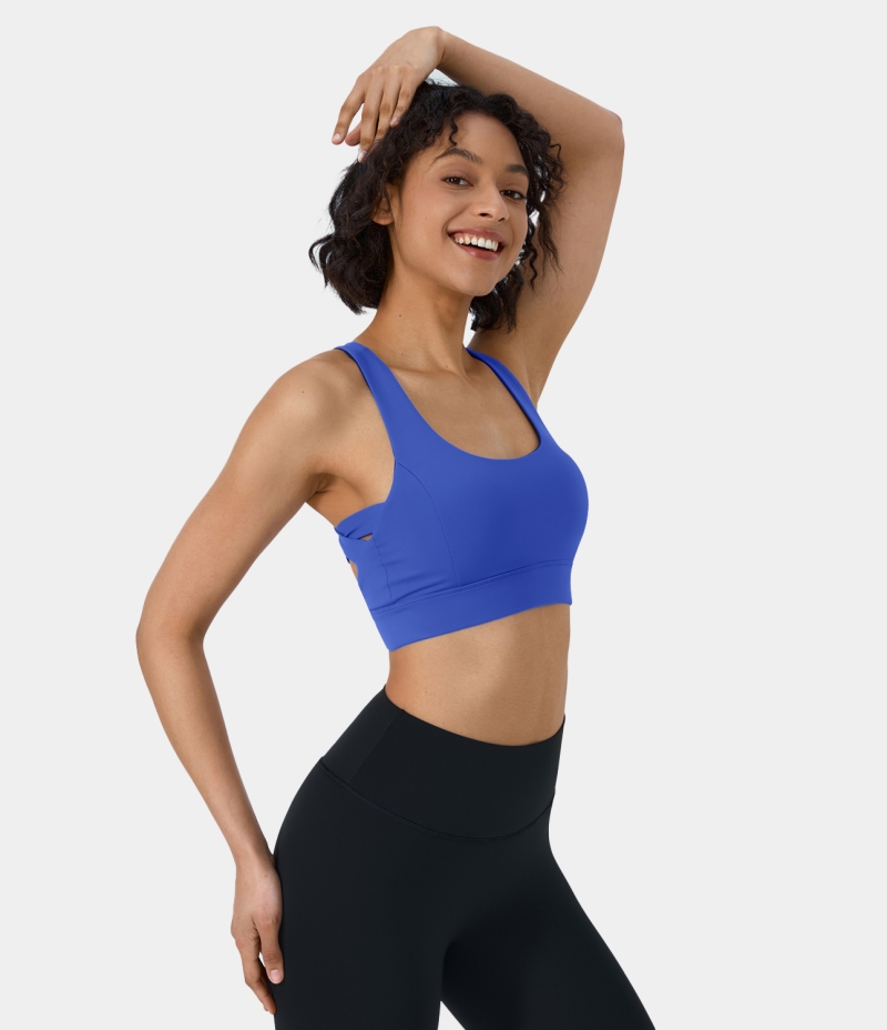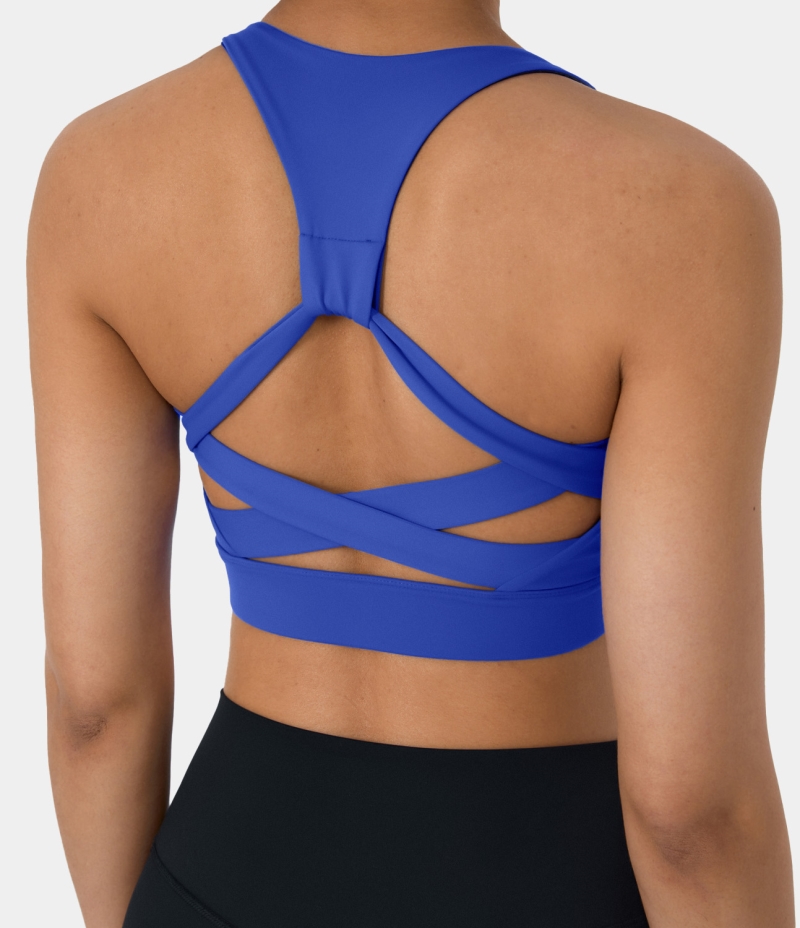 :: Halara In My Feels Low Support Racerback Crisscross Yoga Sports Bra Women's Tops Strong Blue | YPXHSUC-72