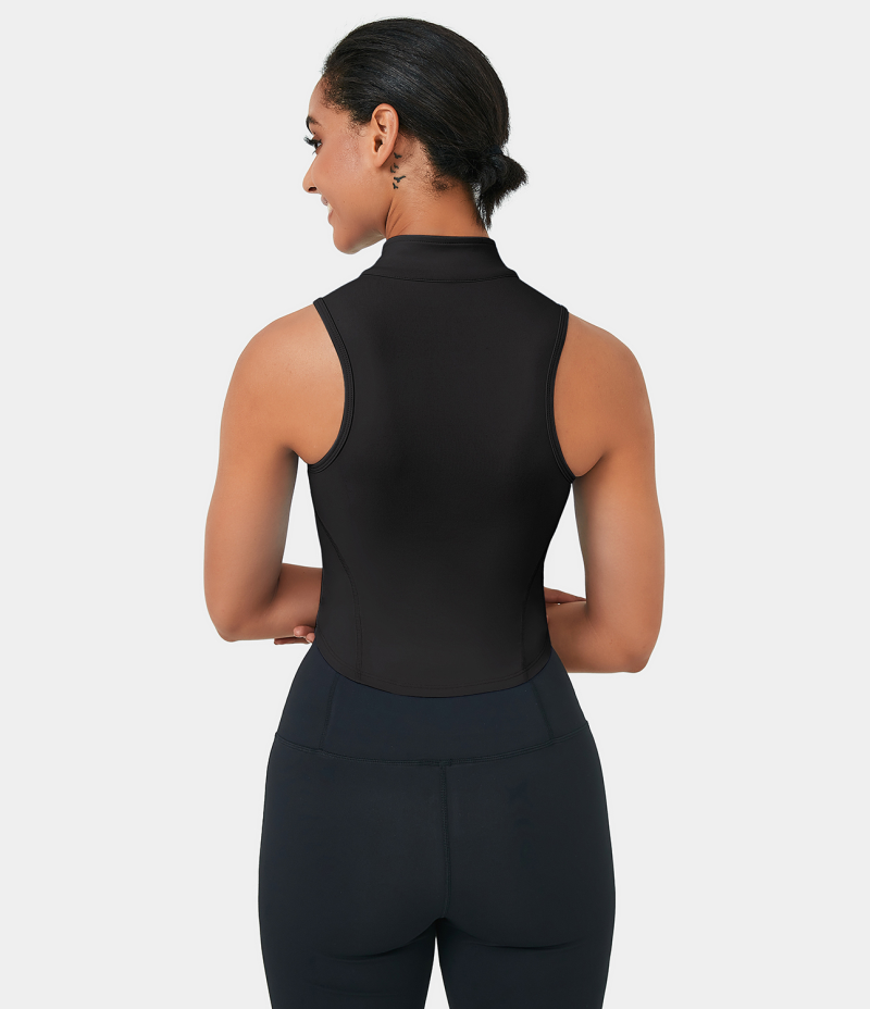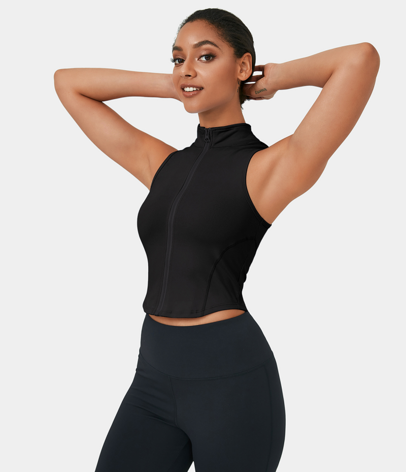 :: Halara In My Feels Mock Neck Zip Front Sleeveless Cropped Tank Women's Tops Black | NAOTDXU-73
