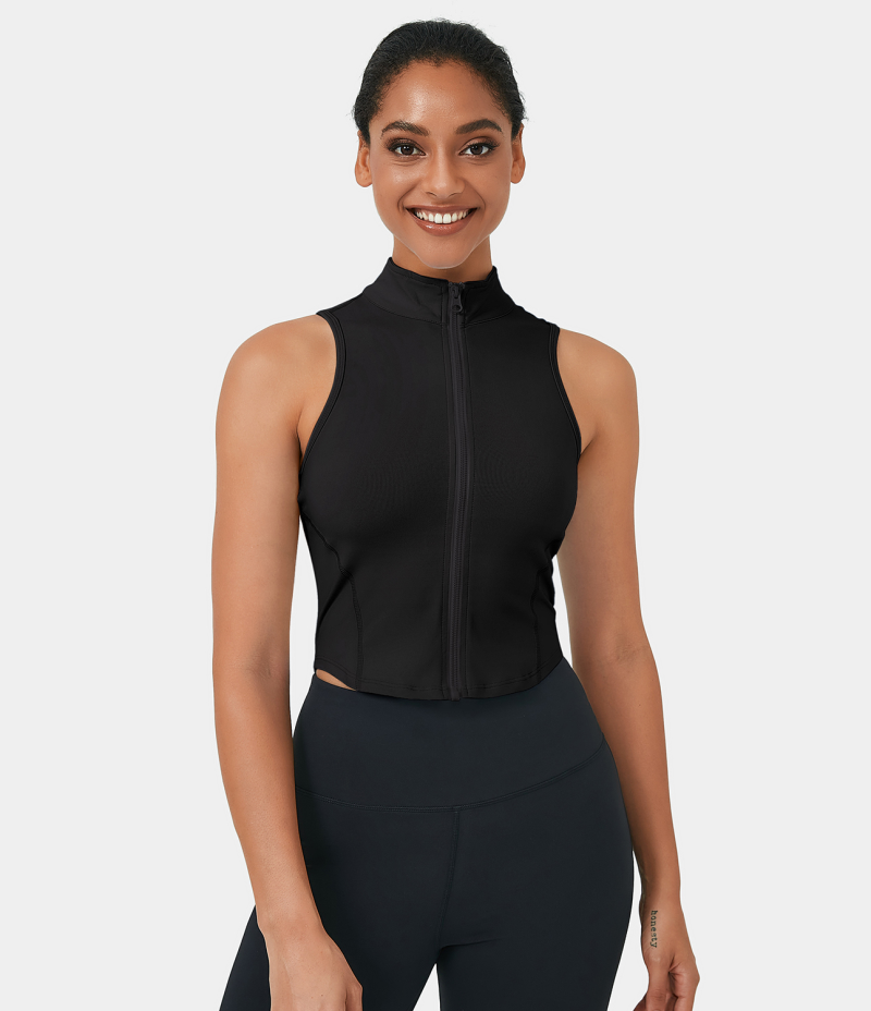 Halara In My Feels Mock Neck Zip Front Sleeveless Cropped Tank Women's Tops Black | NAOTDXU-73