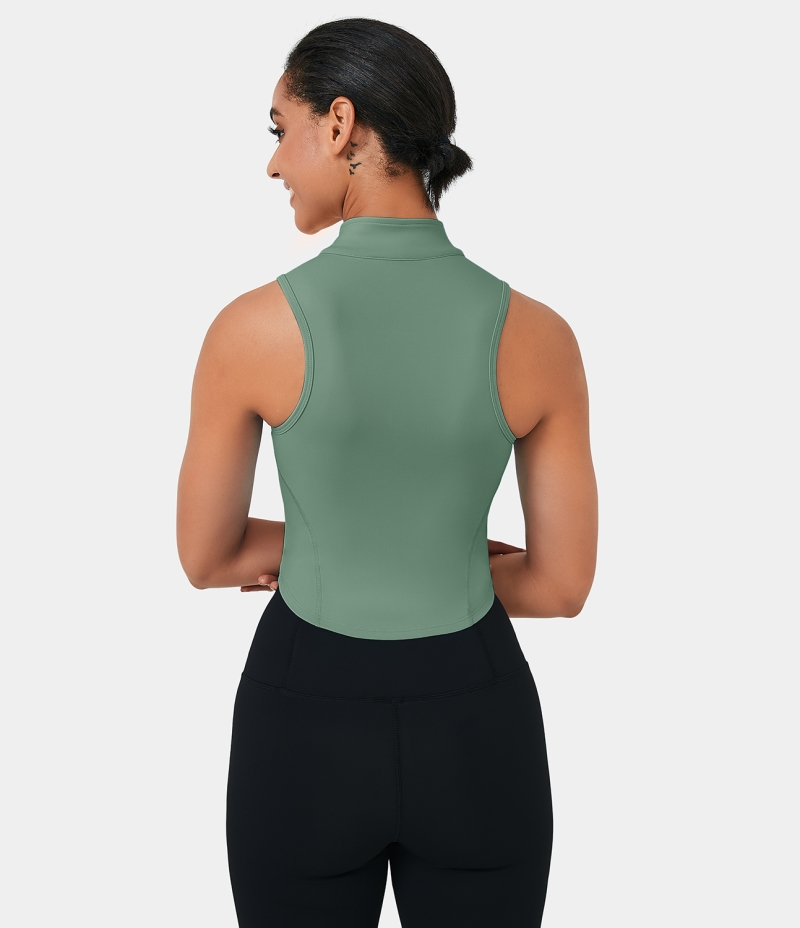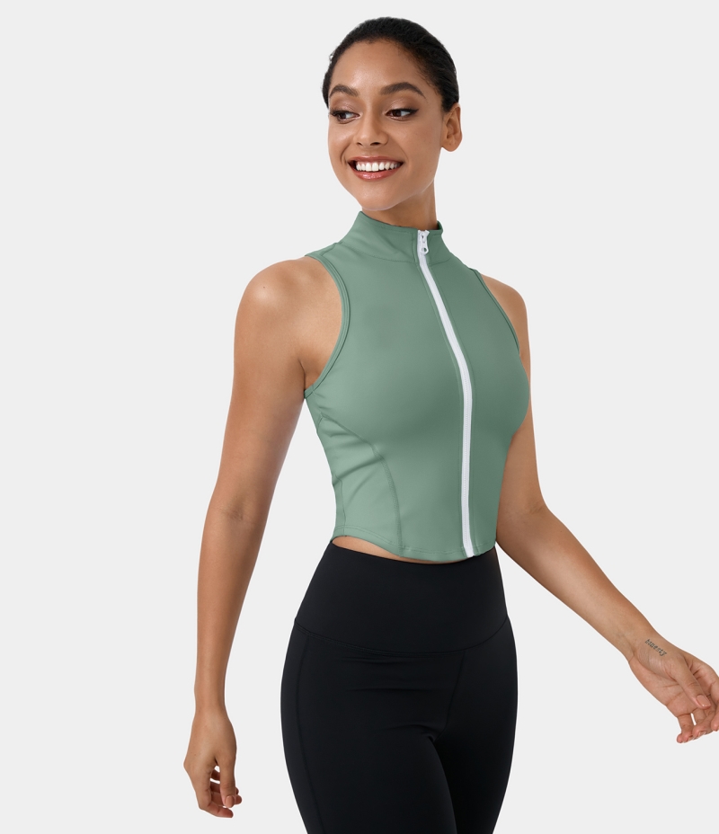 :: Halara In My Feels Mock Neck Zip Front Sleeveless Cropped Tank Women's Tops Seafoam | GFCOAQL-47