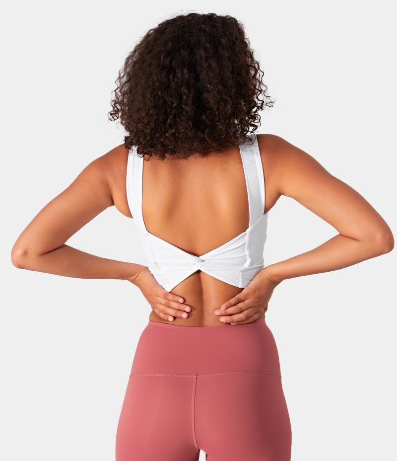 :: Halara In My Feels Padded Backless Twisted Workout Cropped Tank Women's Tops White | ONEYAHR-49