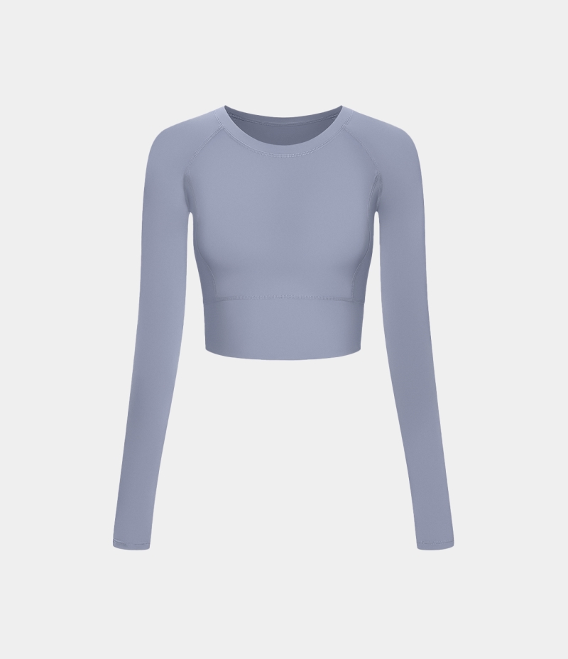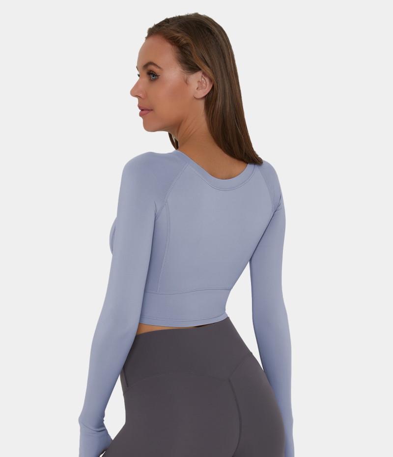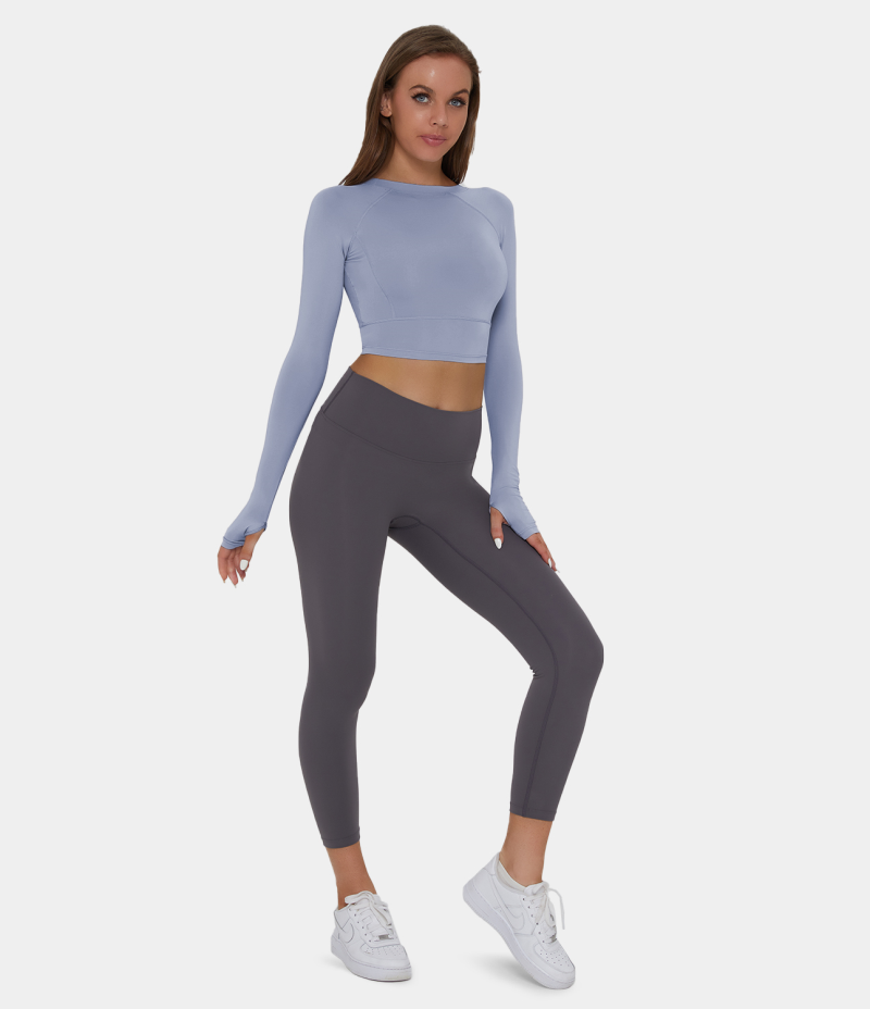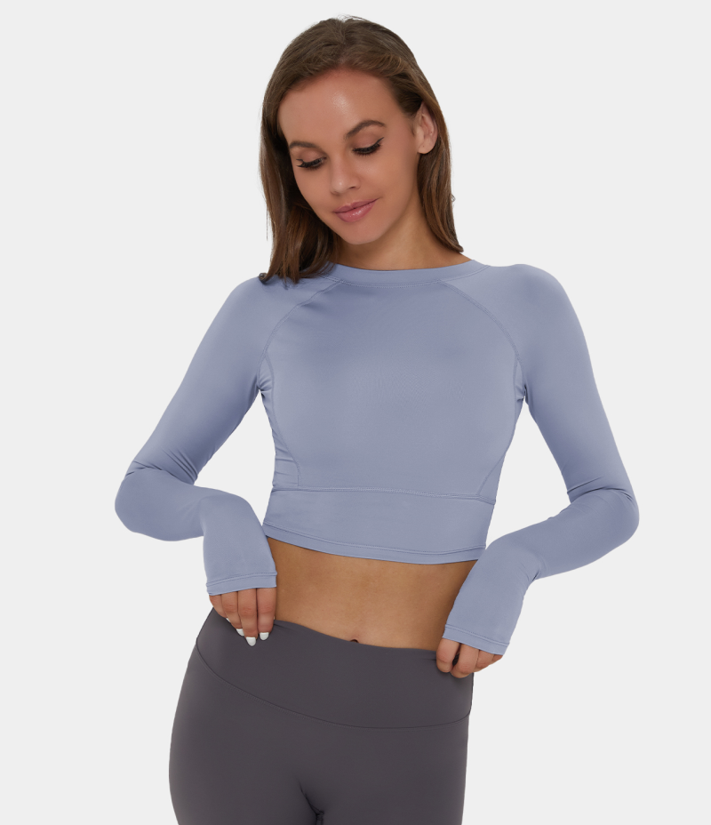 :: Halara In My Feels Solid Thumb Hole Cropped Sports Women's Tops Maya Blue | ATEBIRP-85