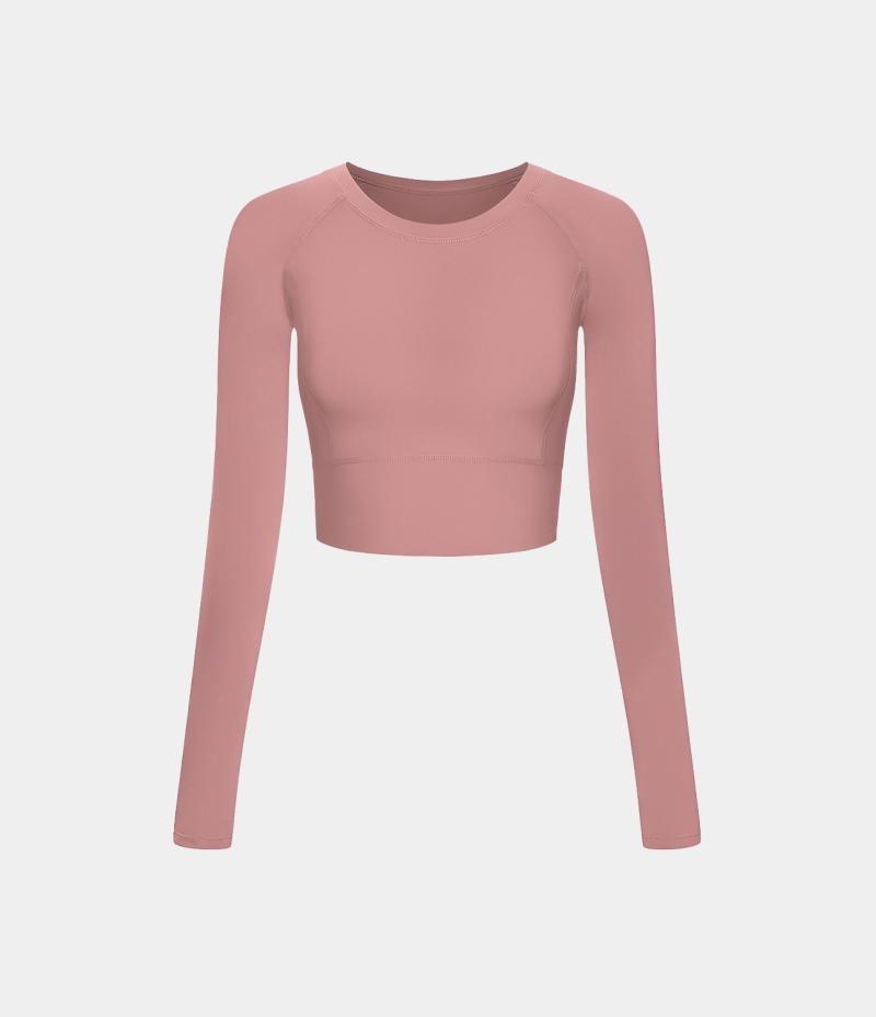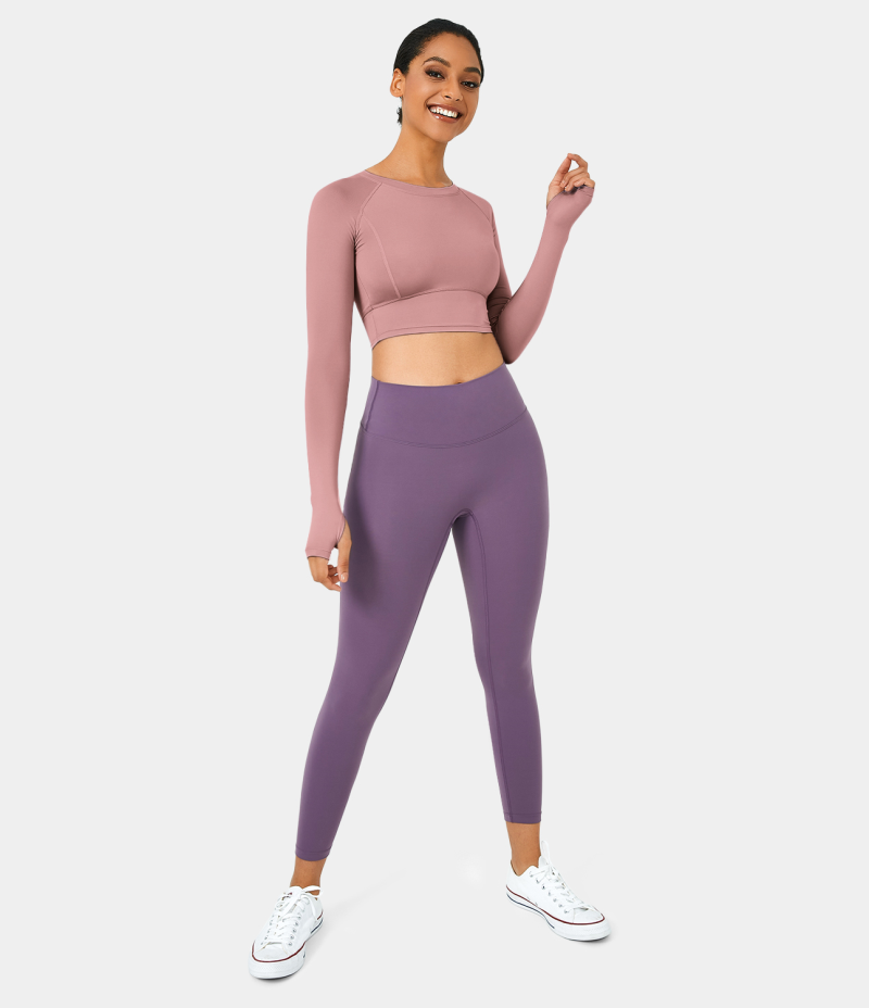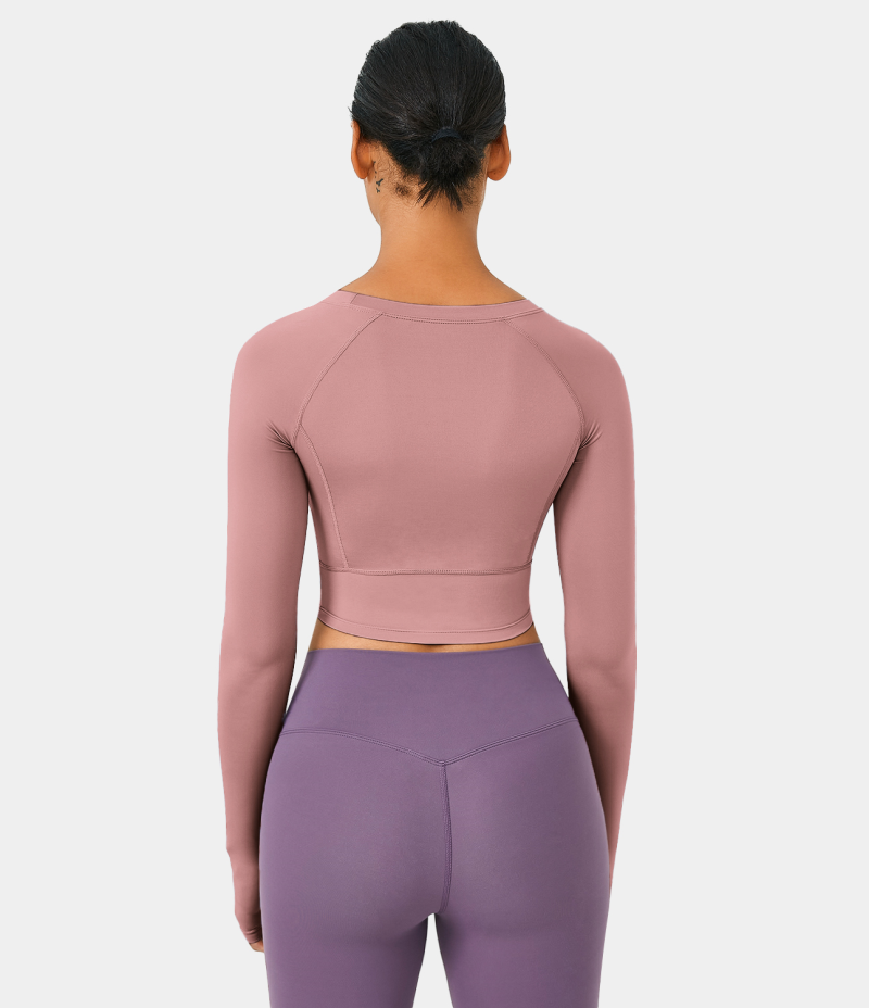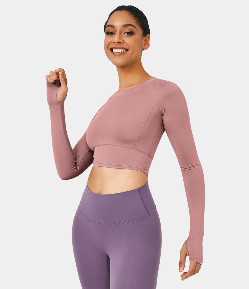 :: Halara In My Feels Solid Thumb Hole Cropped Sports Women's Tops Pink | CVYARGH-12