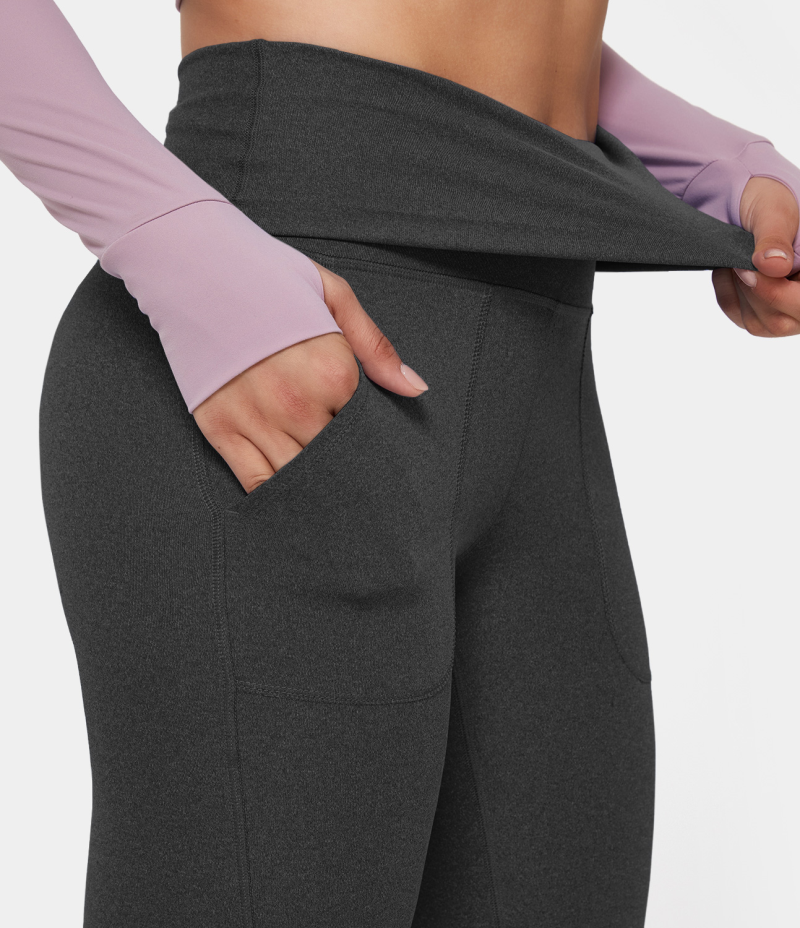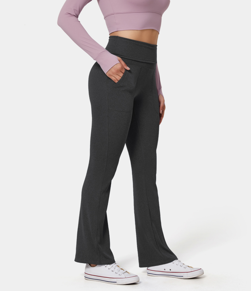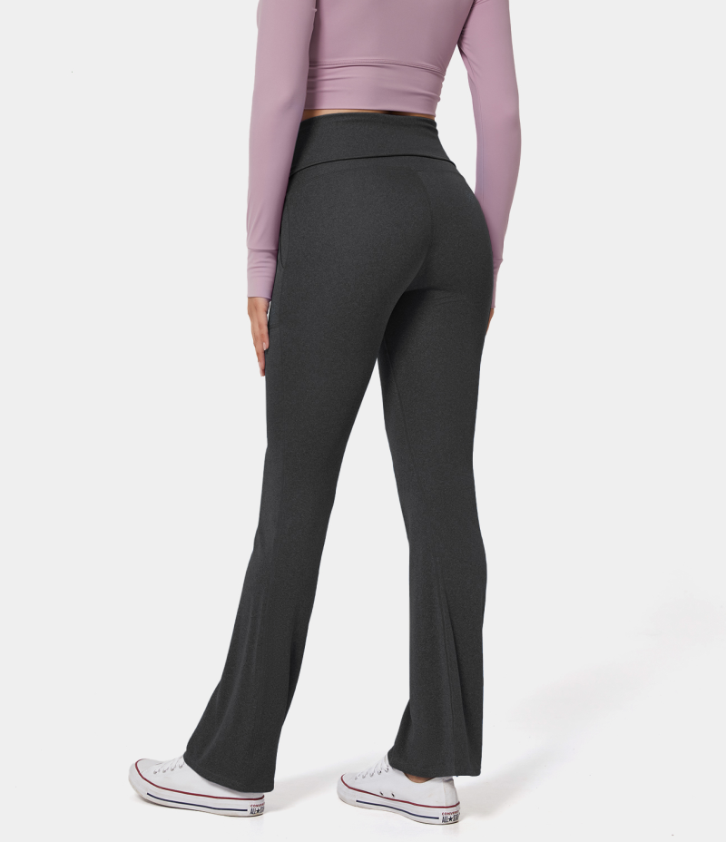 :: Halara In My Feels Super High Waisted Foldover Pocket Full Length Flare Women's Leggings Blue Graphite | 408569-MSC