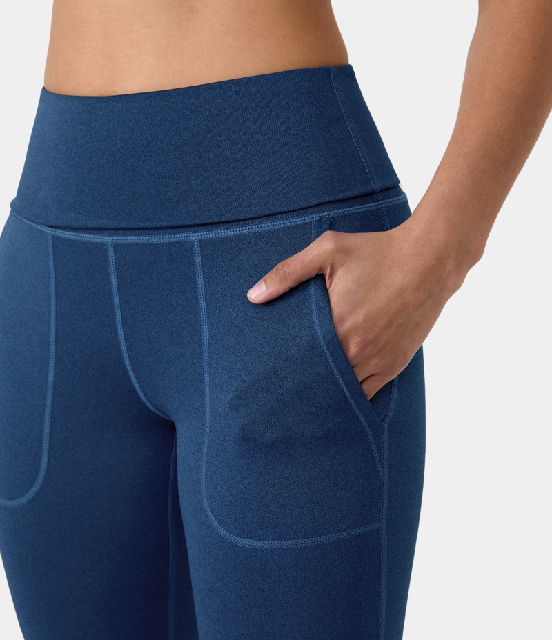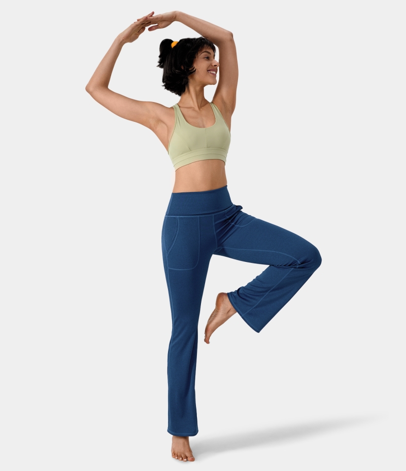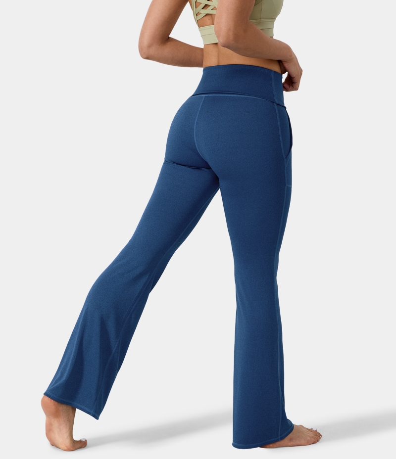 :: Halara In My Feels Super High Waisted Foldover Pocket Full Length Flare Women's Leggings Deep Blue | 879123-RSF