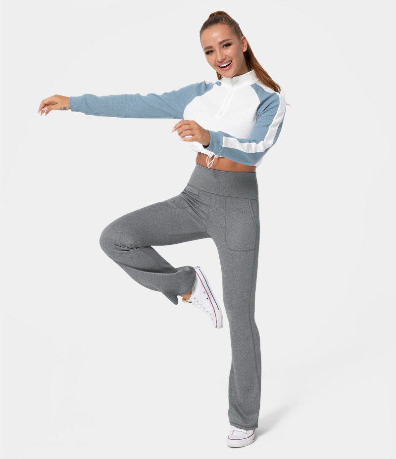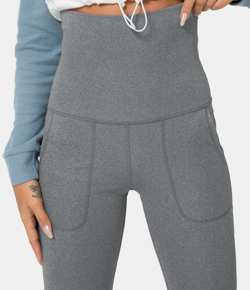 :: Halara In My Feels Super High Waisted Foldover Pocket Full Length Flare Women's Leggings Limestone | 236570-XTV