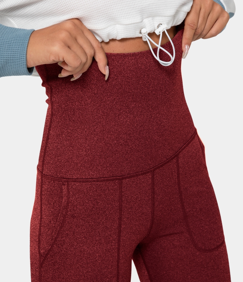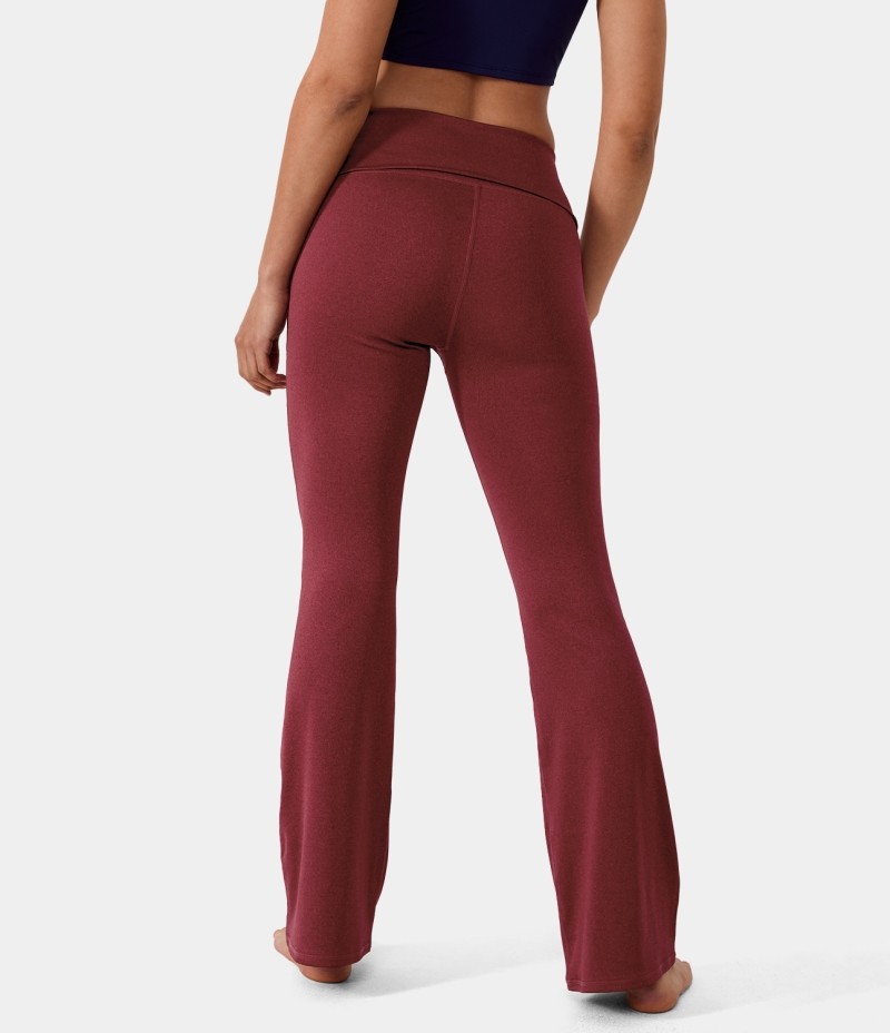 :: Halara In My Feels Super High Waisted Foldover Pocket Full Length Flare Women's Leggings Wine Red | 038592-RXW