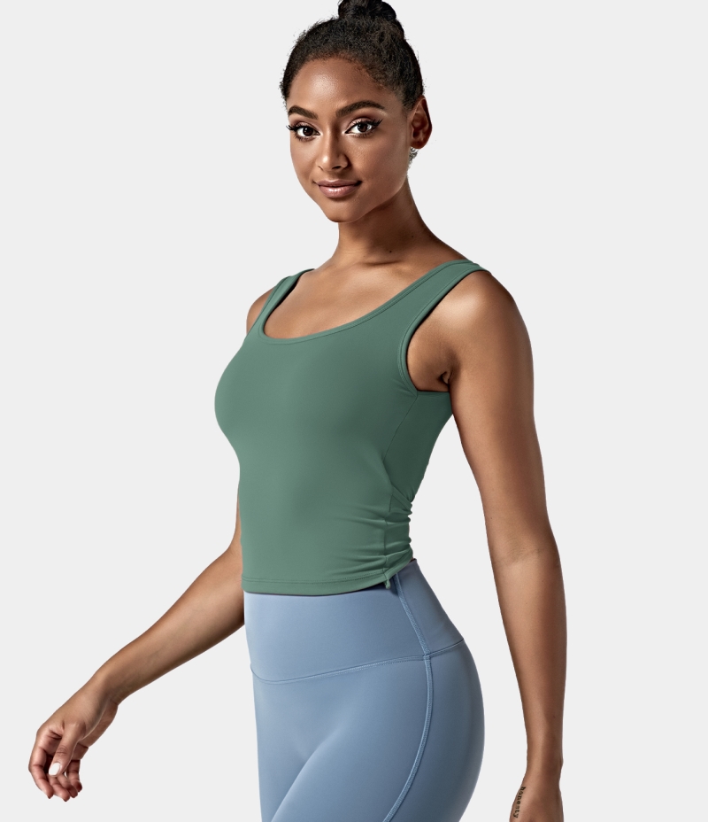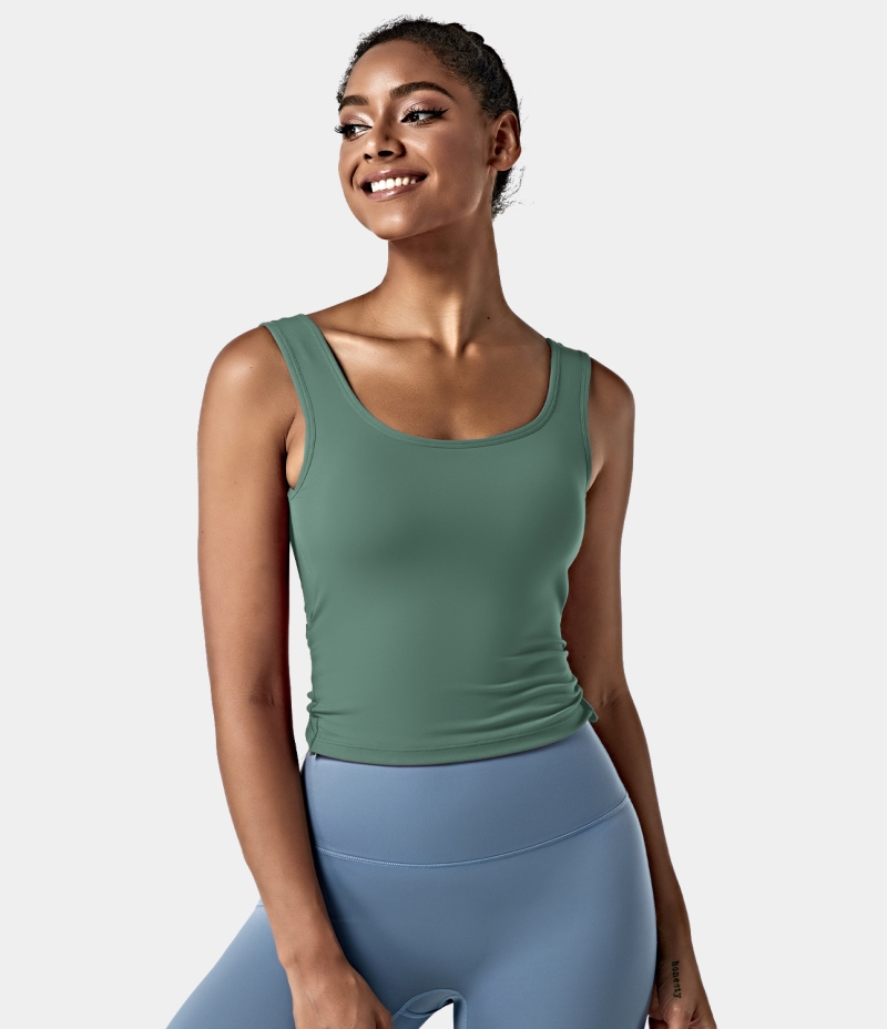:: Halara In My Feels U Neck Backless Crossover Barre Ballet Dance Tank Women's Tops Frosty Spruce | GFUYZRH-91