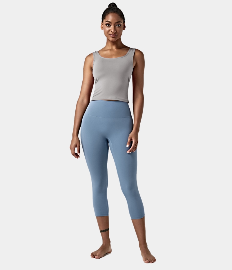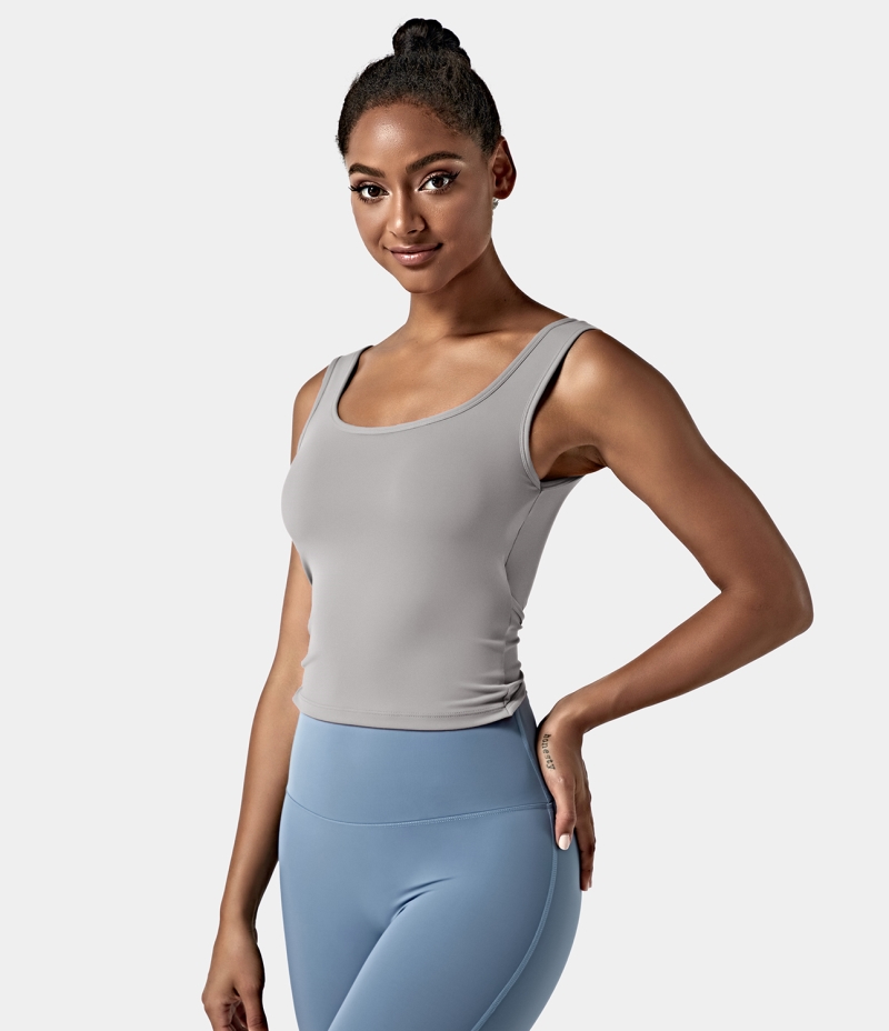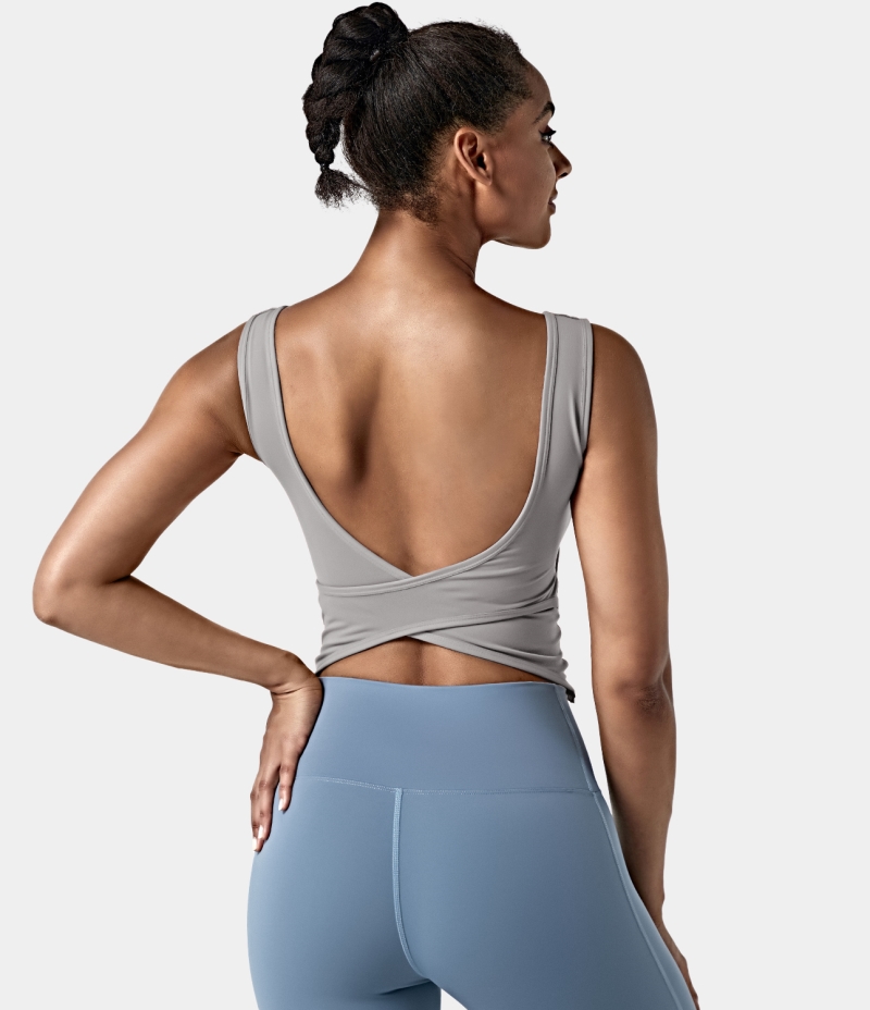 :: Halara In My Feels U Neck Backless Crossover Barre Ballet Dance Tank Women's Tops Mirage Gray | IGSVEOZ-42