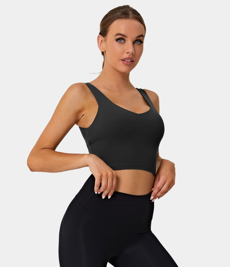 Halara In My Feels V Back Crossover Workout Cropped Tank Women's Tops Black | CGLHMWU-36