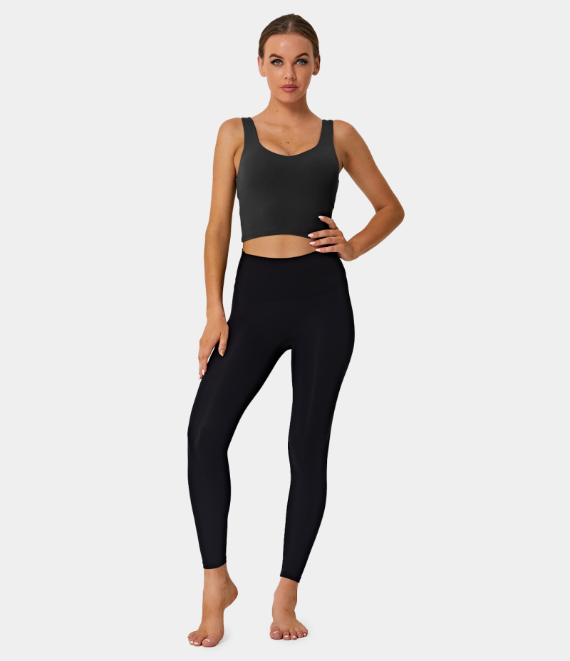 :: Halara In My Feels V Back Crossover Workout Cropped Tank Women's Tops Black | CGLHMWU-36