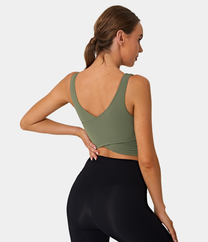 :: Halara In My Feels V Back Crossover Workout Cropped Tank Women's Tops Deep Olive | ROJUSTI-20