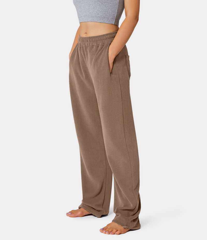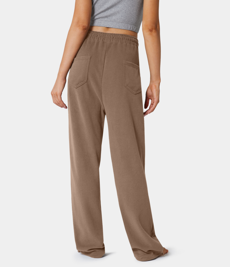 :: Halara Inside Drawstring Elastic Waist Side Pocket Cotton Wide Leg Women's Pants Acorn | 149608-LXQ
