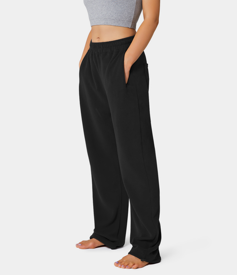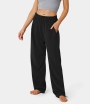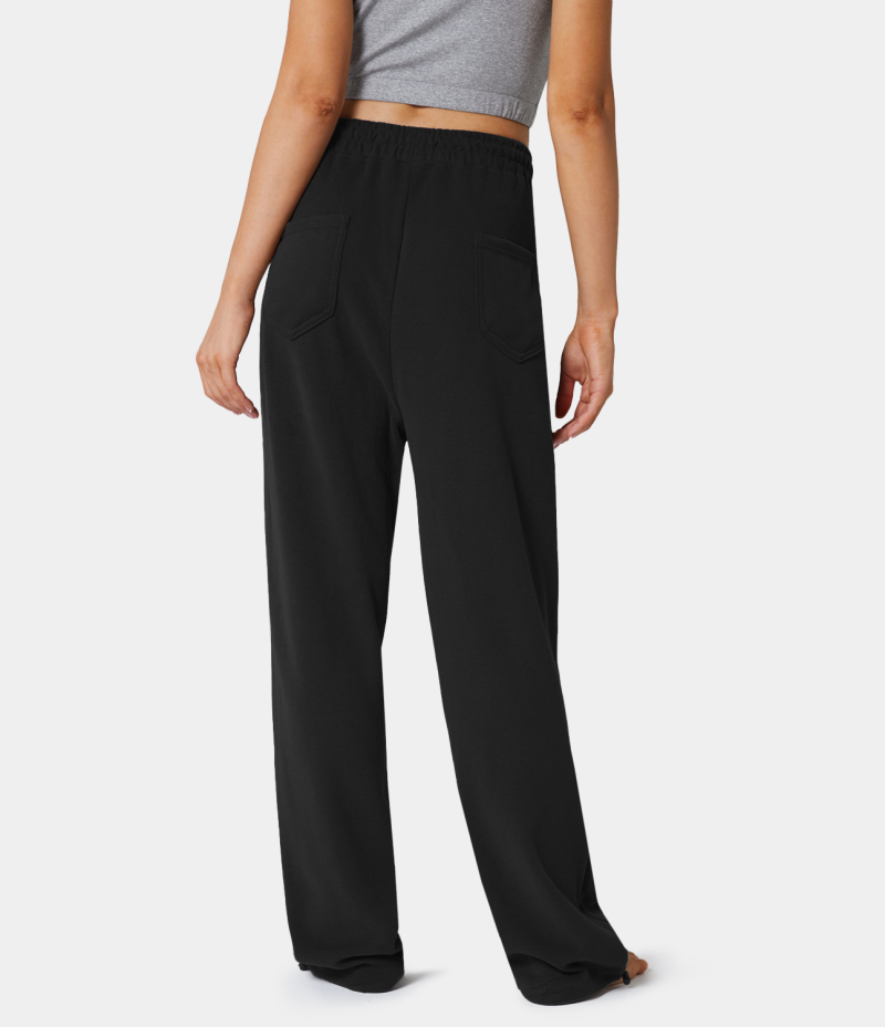 Halara Inside Drawstring Elastic Waist Side Pocket Cotton Wide Leg Women's Pants Black | 514786-IRX