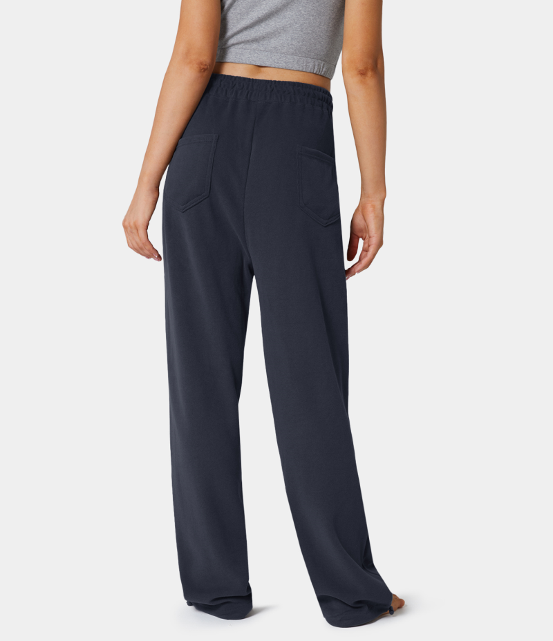 :: Halara Inside Drawstring Elastic Waist Side Pocket Cotton Wide Leg Women's Pants Sky Captain | 057983-JAP