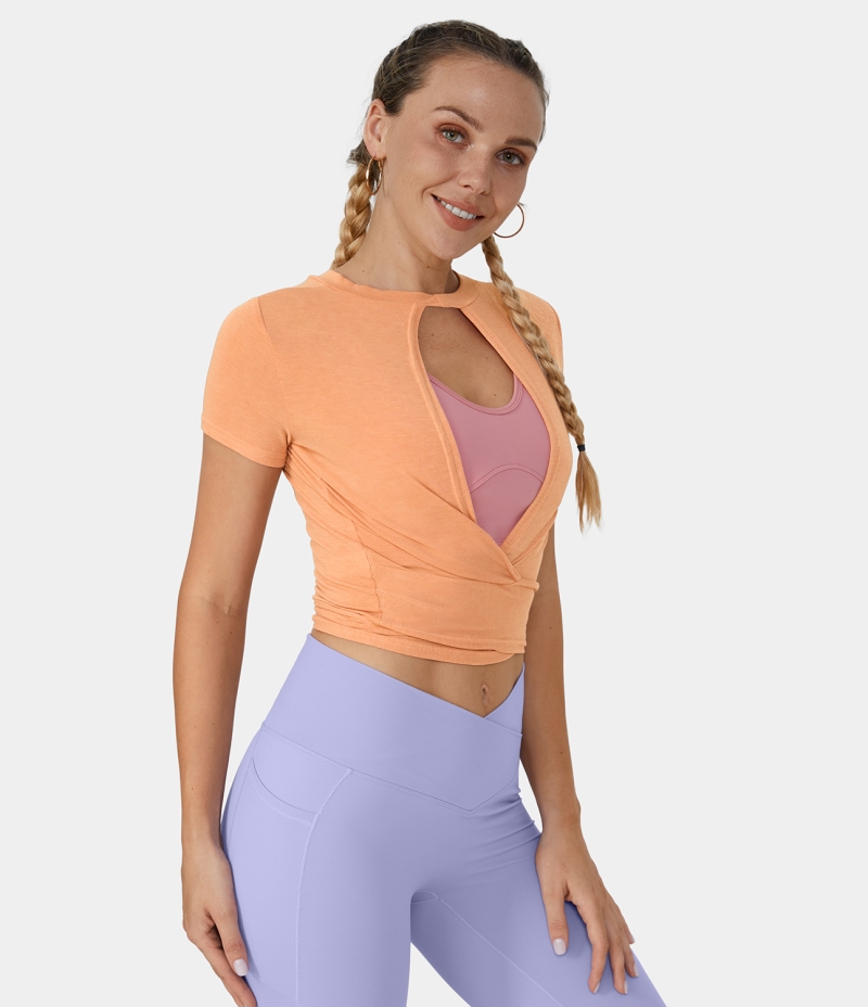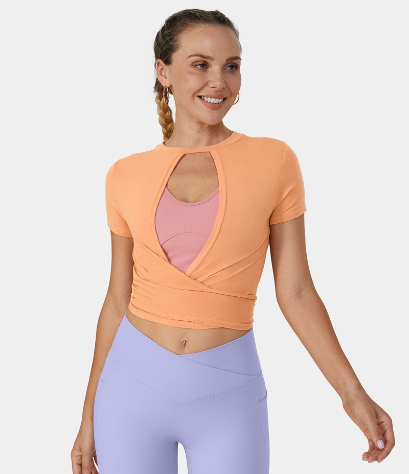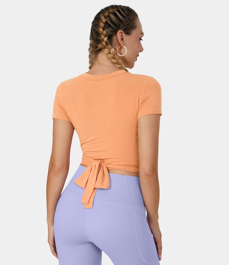 :: Halara Lace Up Cut Out Barre Ballet Dance Sports-Front and Back Wearable Women's Tops Caramel Cream | NVBAZUE-18