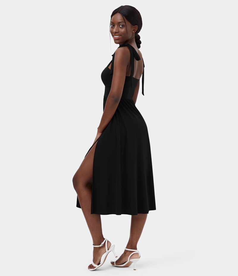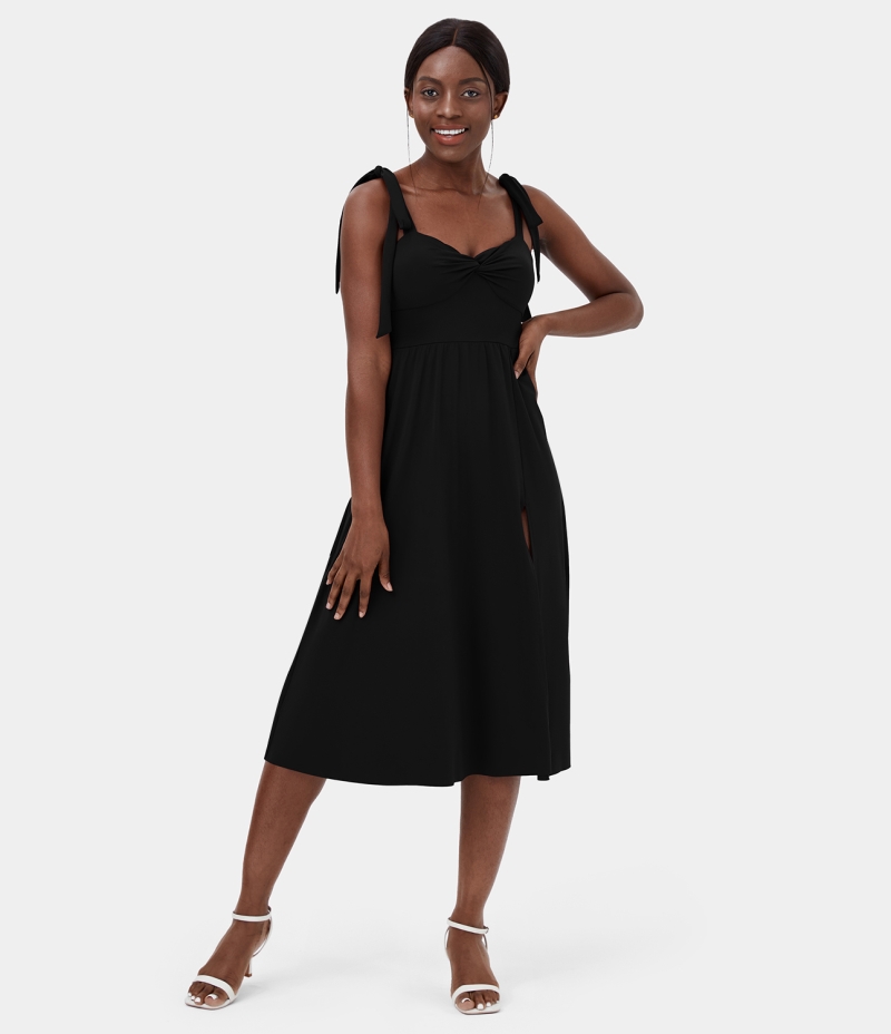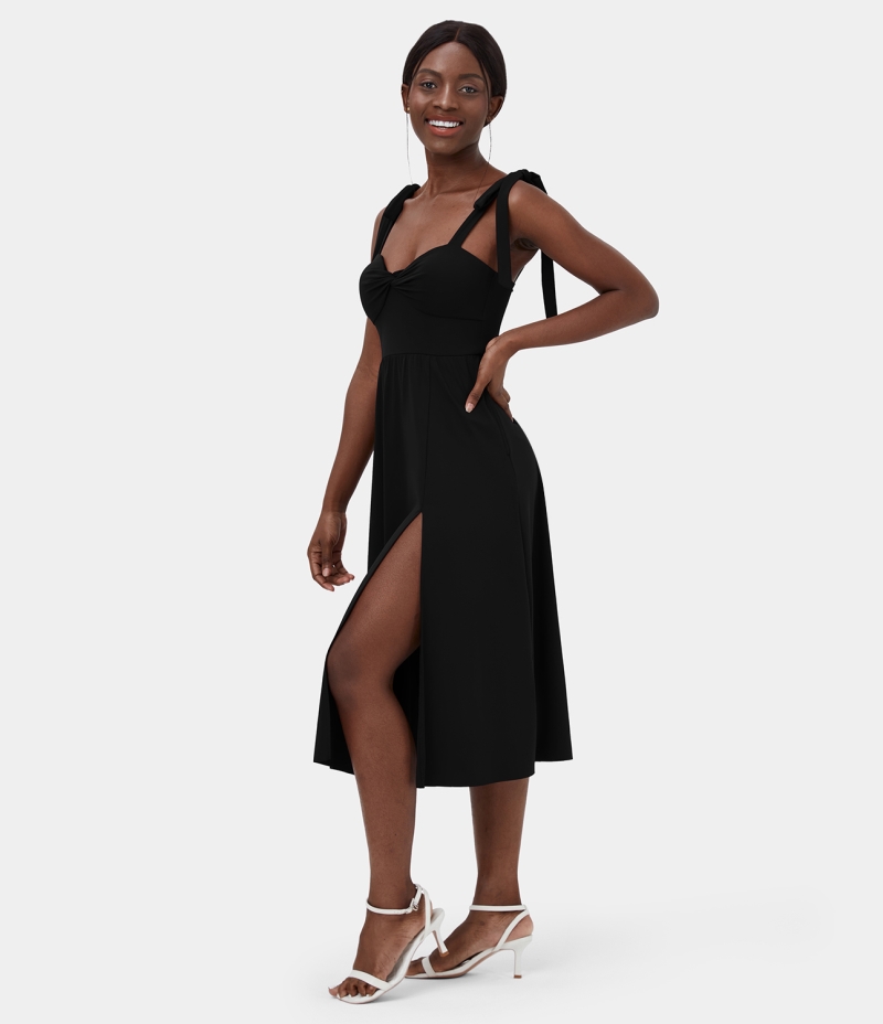 Halara Lace Up Twisted Side Pocket Split Hem Dance Midi Women's Dress Black | 690521-GDK