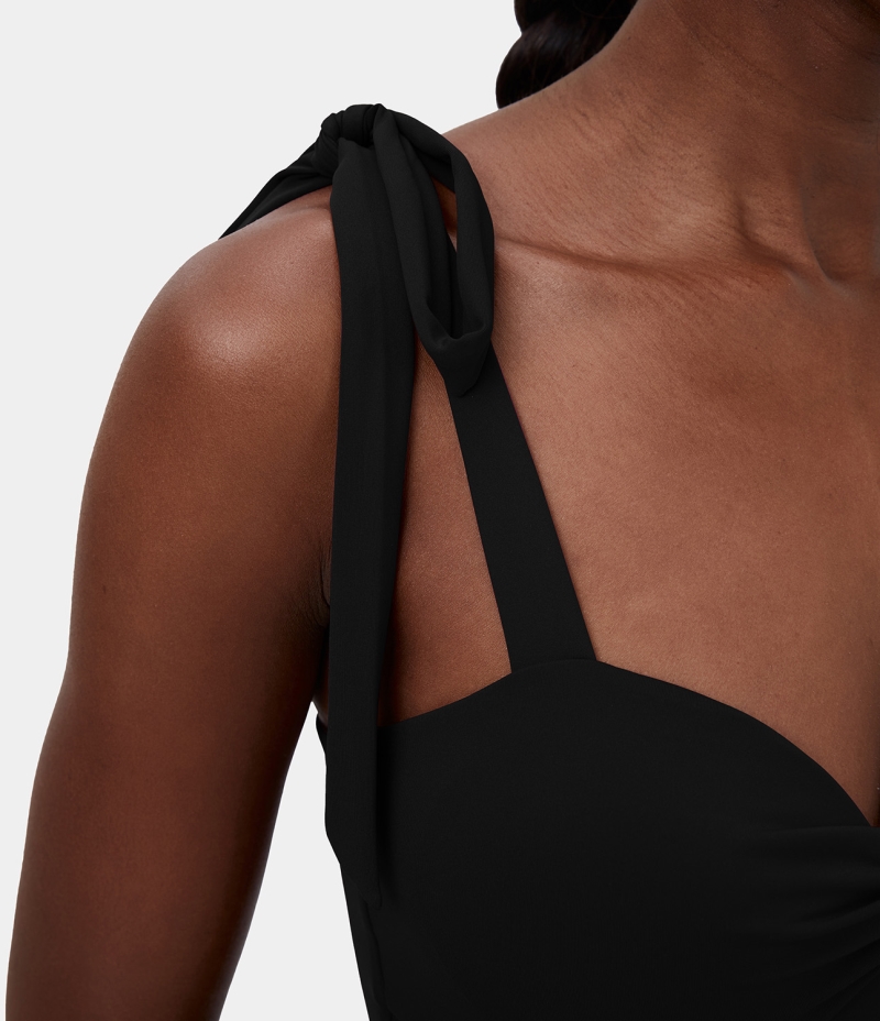 :: Halara Lace Up Twisted Side Pocket Split Hem Dance Midi Women's Dress Black | 690521-GDK