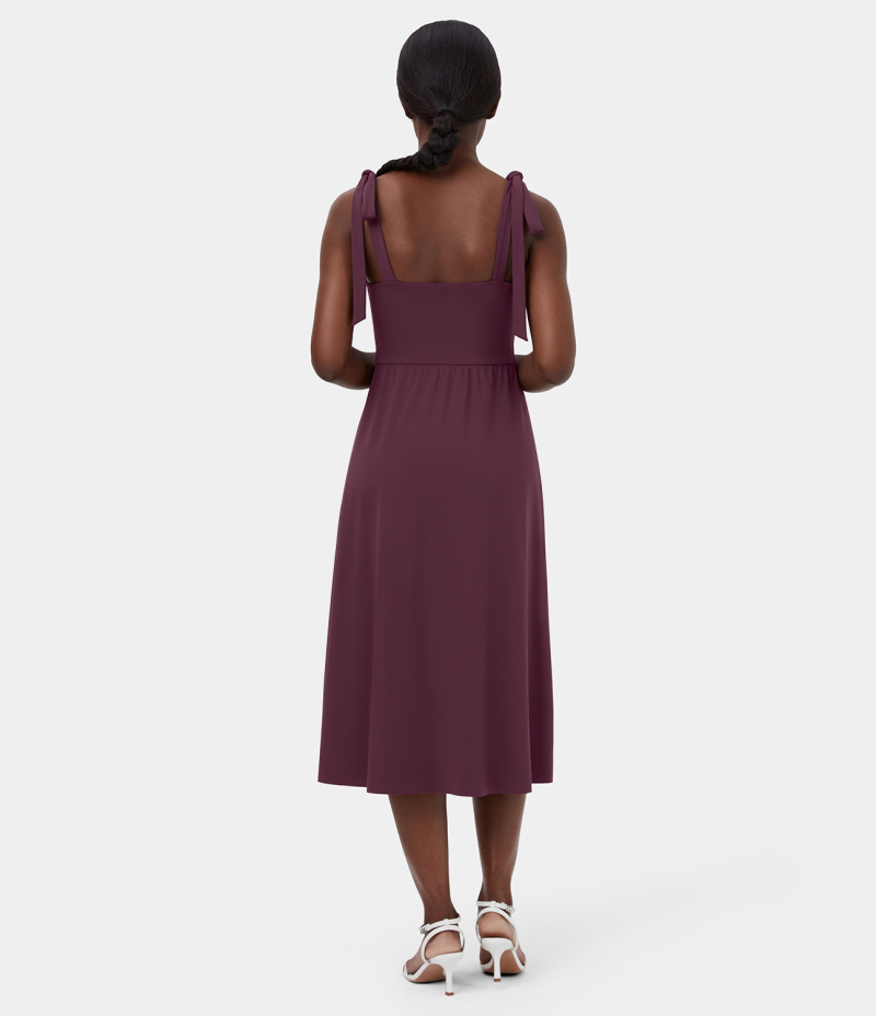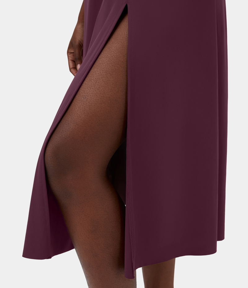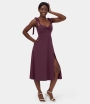 :: Halara Lace Up Twisted Side Pocket Split Hem Dance Midi Women's Dress New Maroon | 927364-HKW