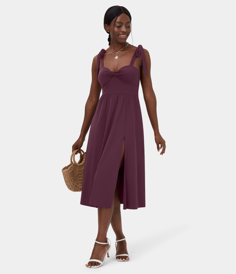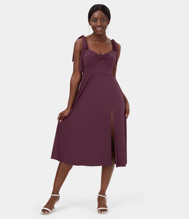 Halara Lace Up Twisted Side Pocket Split Hem Dance Midi Women's Dress New Maroon | 927364-HKW