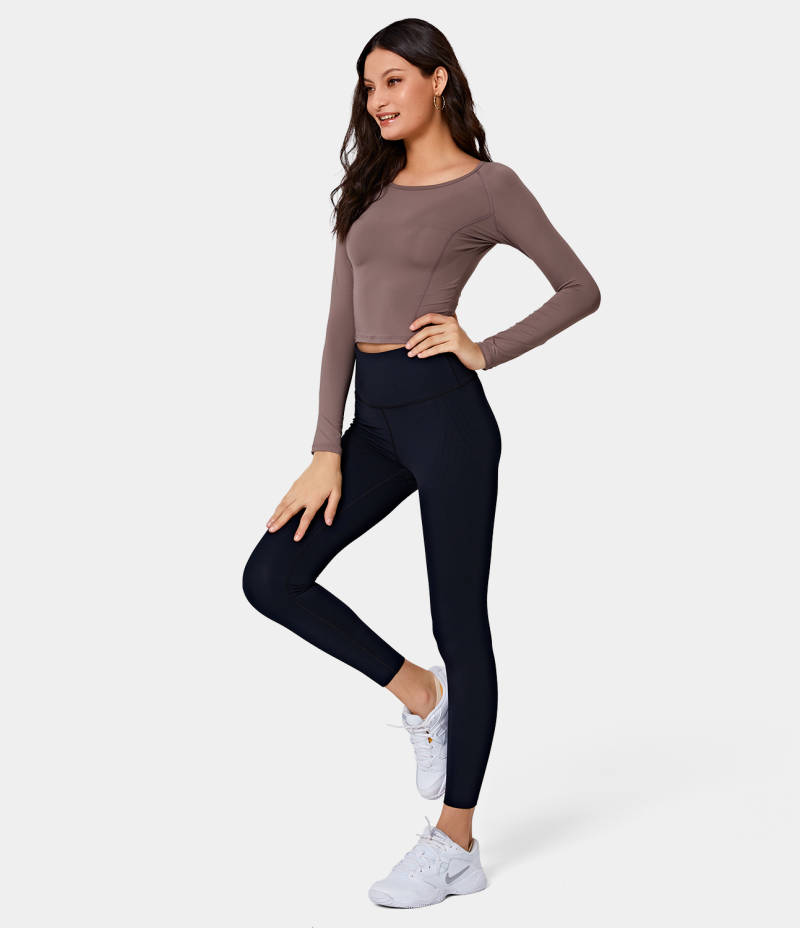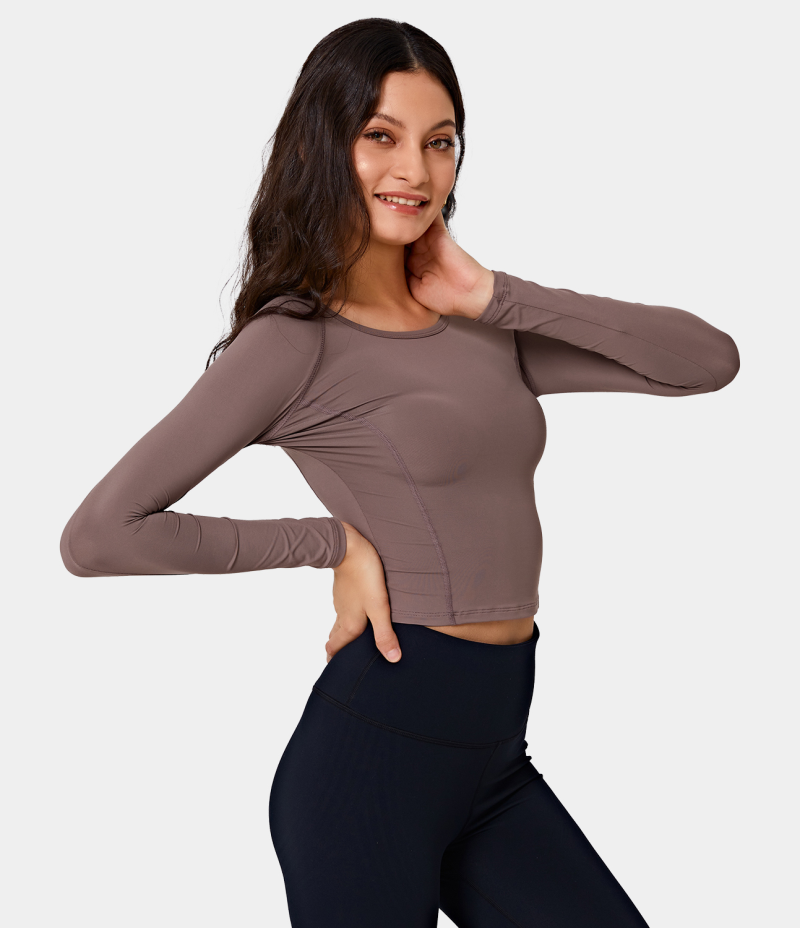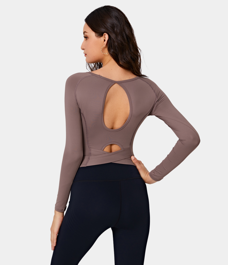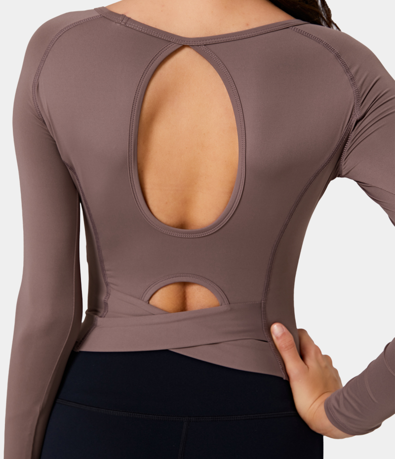:: Halara Long Sleeve Cut Out Crossover Hem Sports Women's Tops Dove Purple | SGILMFO-42