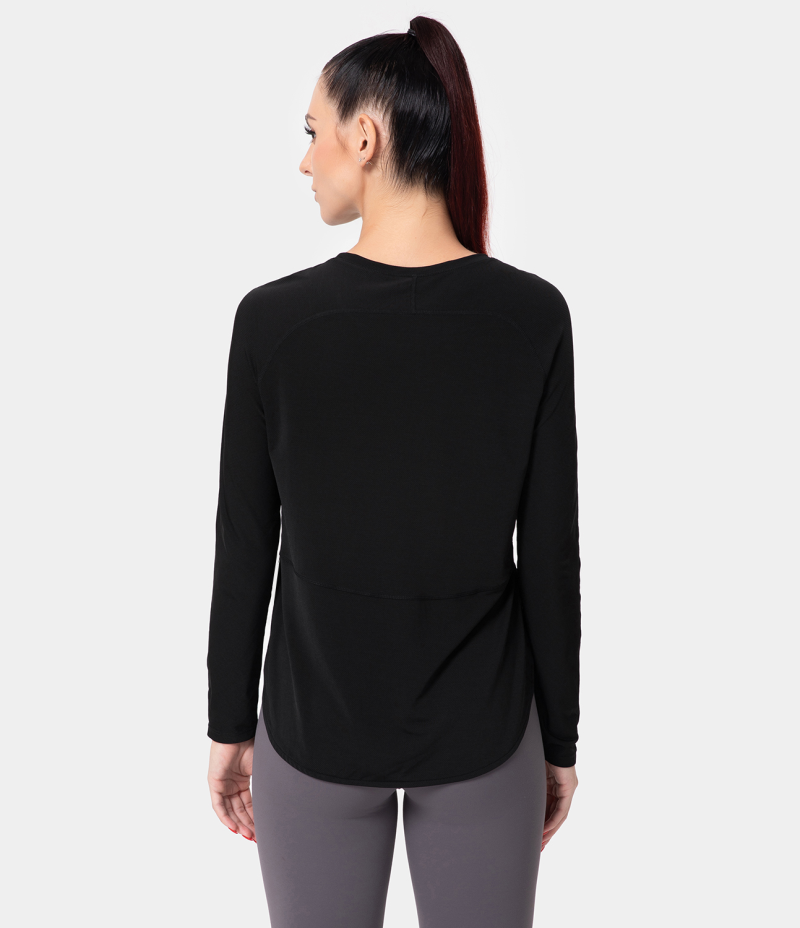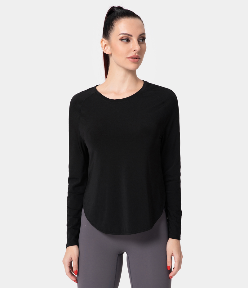 :: Halara Long Sleeve High Low Curved Hem Sports Women's Tops Black | NDTLHQO-34
