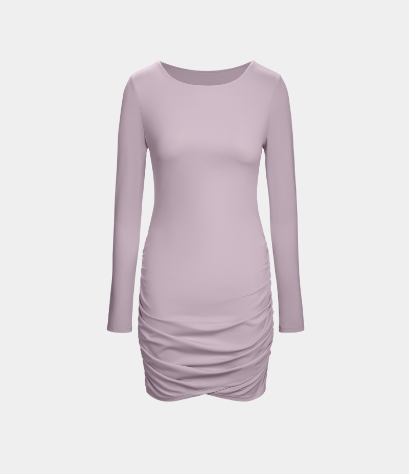 :: Halara Long Sleeve Ruched Bodycon Mini Casual Women's Dress Lavender Frost | 907541-PNB