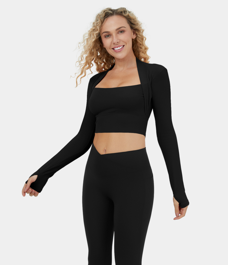 :: Halara Long Sleeve Thumb Hole Cropped Yoga Sports Women's Tops Black | XVYFKDB-15