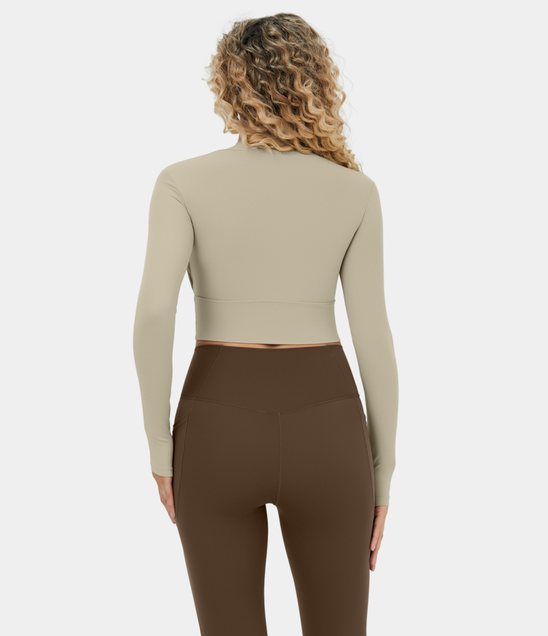 Halara Long Sleeve Thumb Hole Cropped Yoga Sports Women's Tops Brown Rice | HUGCLNA-87