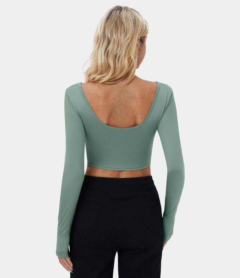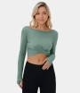 :: Halara Long Sleeve Thumb Hole Twisted Cropped Yoga Sports Women's Tops Green Bay | CSUWIKV-58