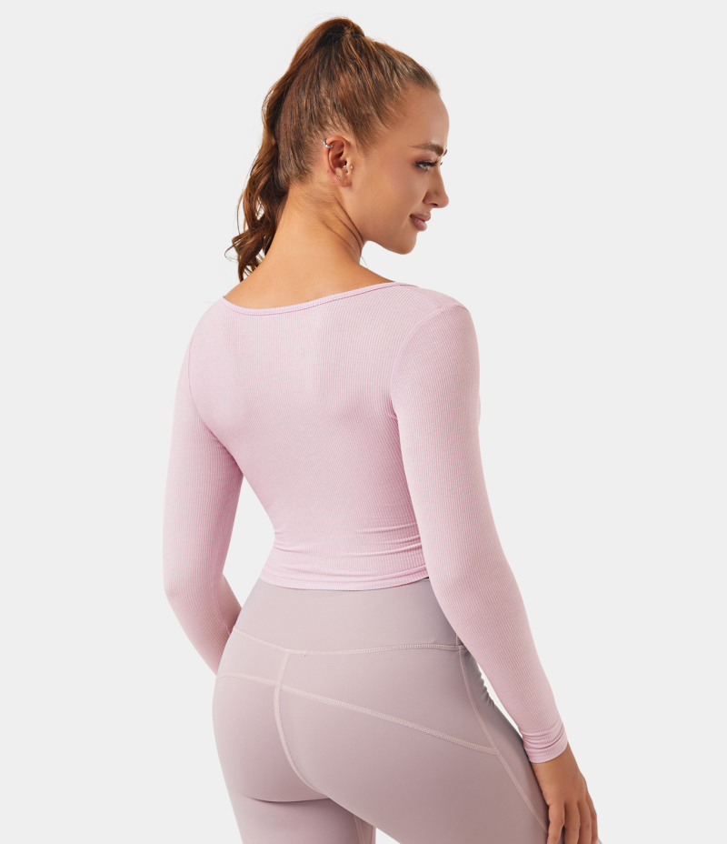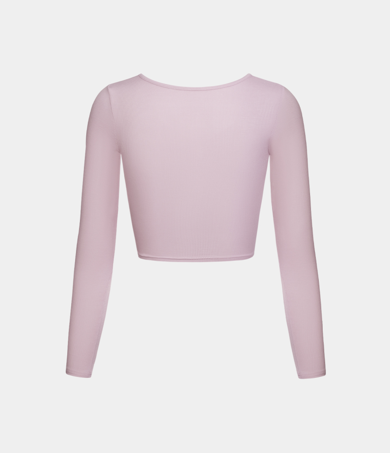 :: Halara Long Sleeve Tie Front Ruched Cropped Sports Women's Tops Putty Pink | DMBFRPQ-02