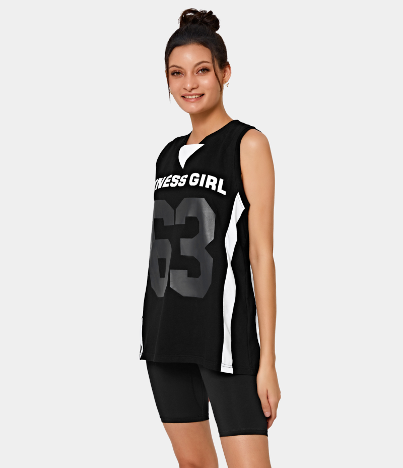 Halara Loose Alphanumeric Print Contrast Trim Tank Women's Tops Black | ZNPTGQW-03