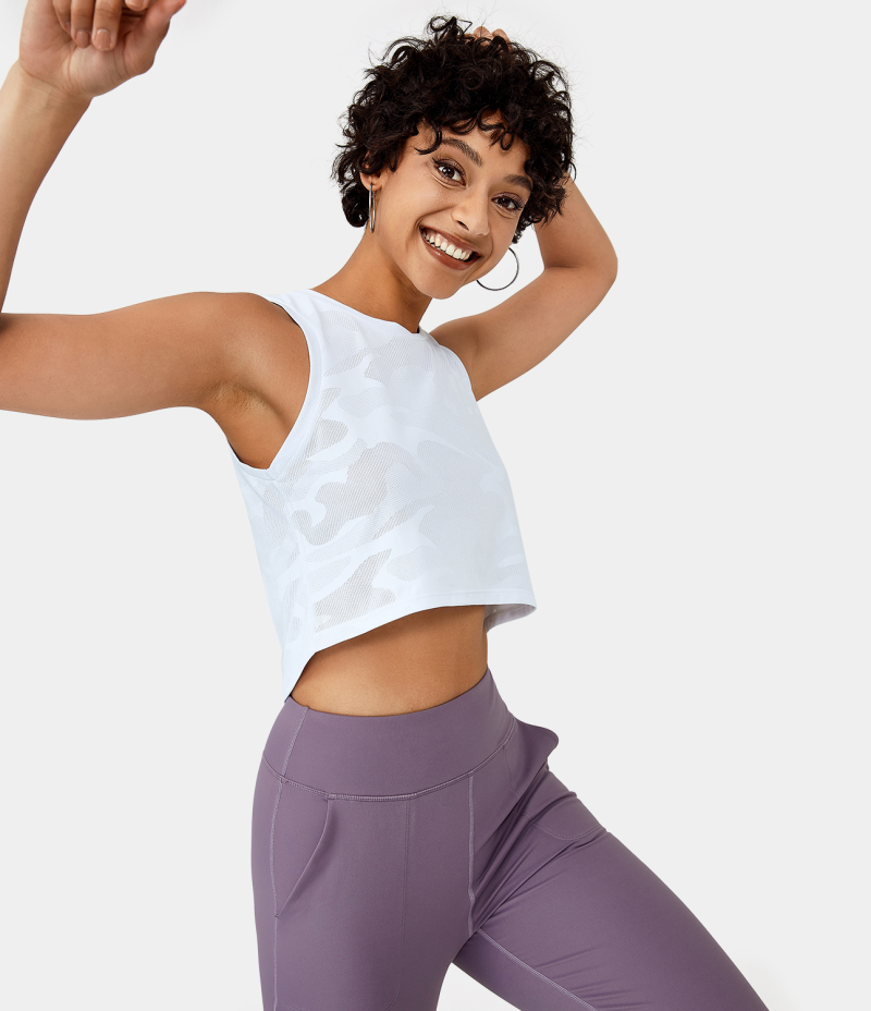 :: Halara Loose Camo Cropped Tank Women's Tops White | FIGCWBM-81