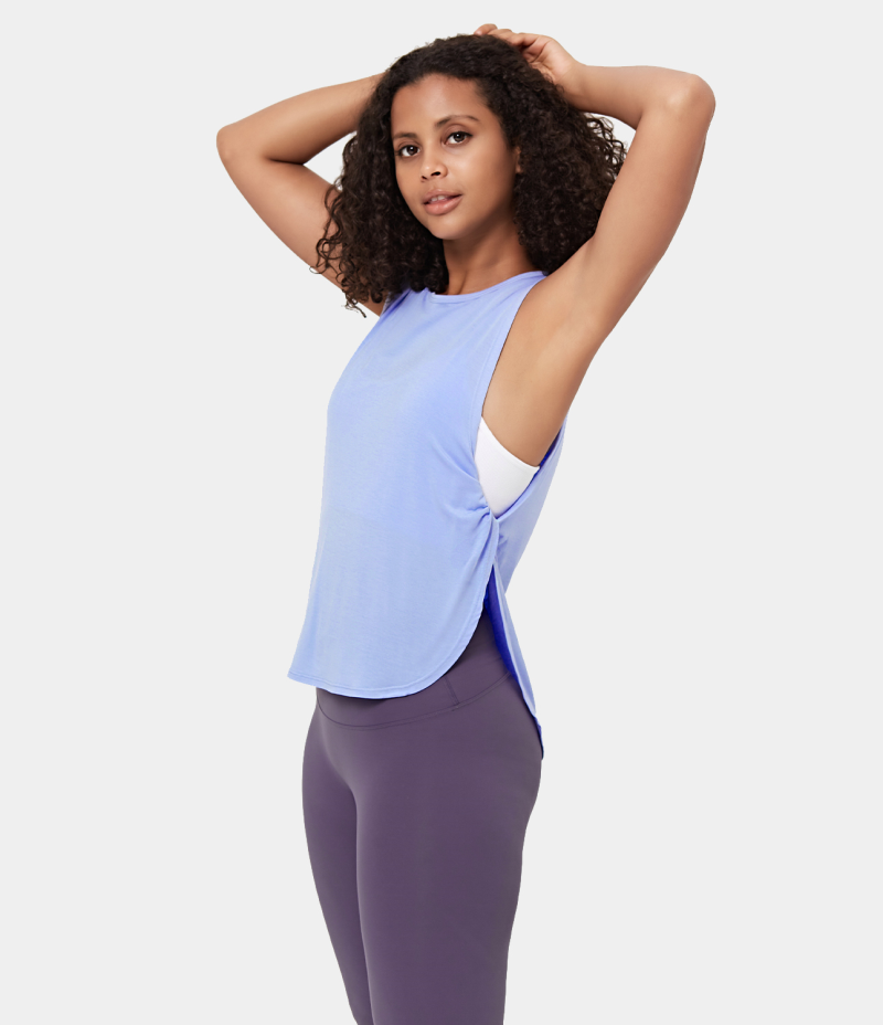 :: Halara Loose Side Twisted Sleeveless Women's Tops Light Baby Blue | SXTCHDV-12