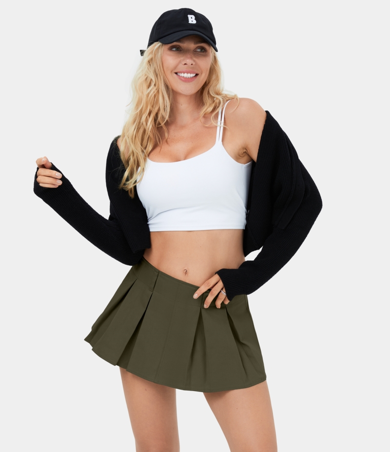 :: Halara Low Rise Belted 2-in-1 Pleated Mini Casual Women's Skirts Forest Night | 046912-CUT