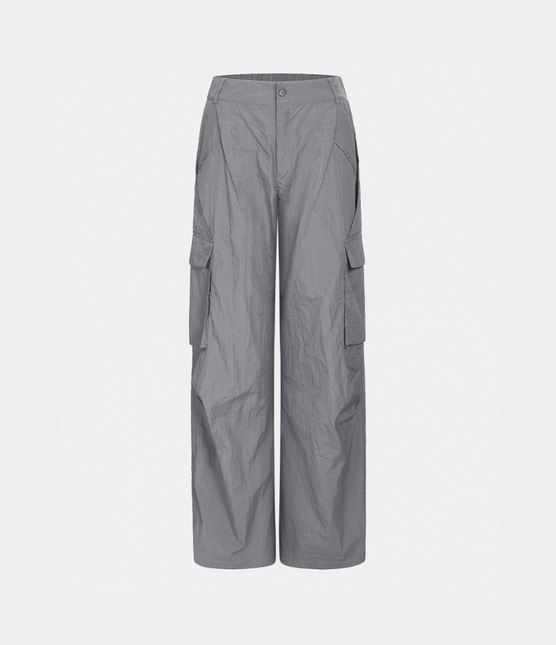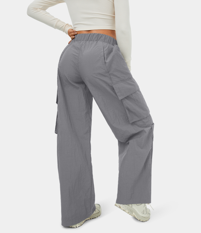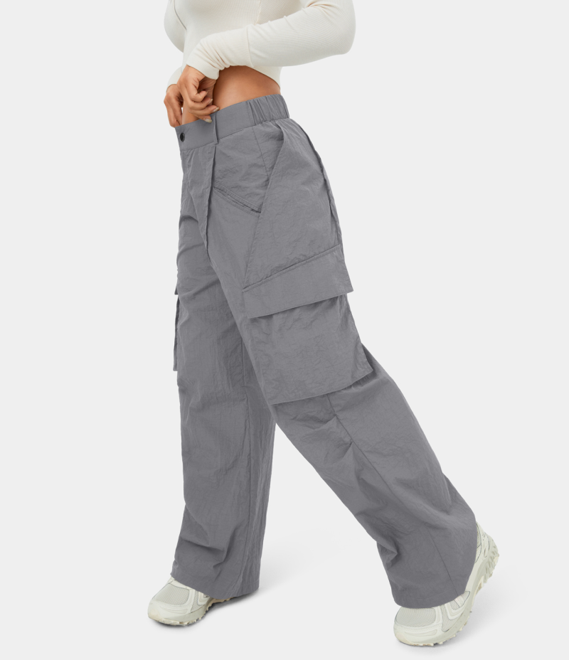 :: Halara Low Rise Belted Button Zipper Side Pocket Wide Leg Casual Cargo Women's Pants Grey | 639754-ANI