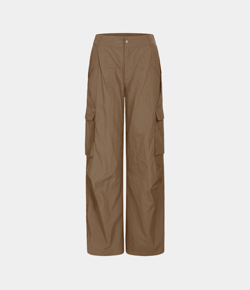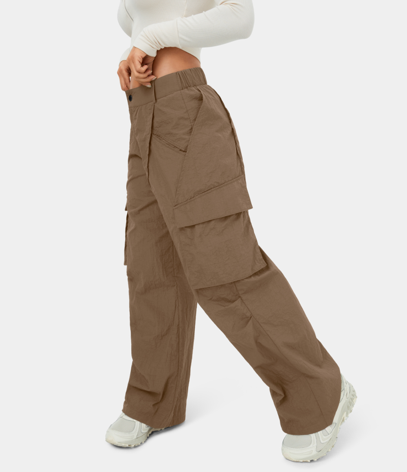 :: Halara Low Rise Belted Button Zipper Side Pocket Wide Leg Casual Cargo Women's Pants Nuthatch | 165409-OIK