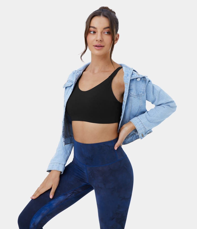 :: Halara Low Support Adjustable Strap Cut Out Yoga Sports Bra Women's Tops Black | KFVGZSO-14
