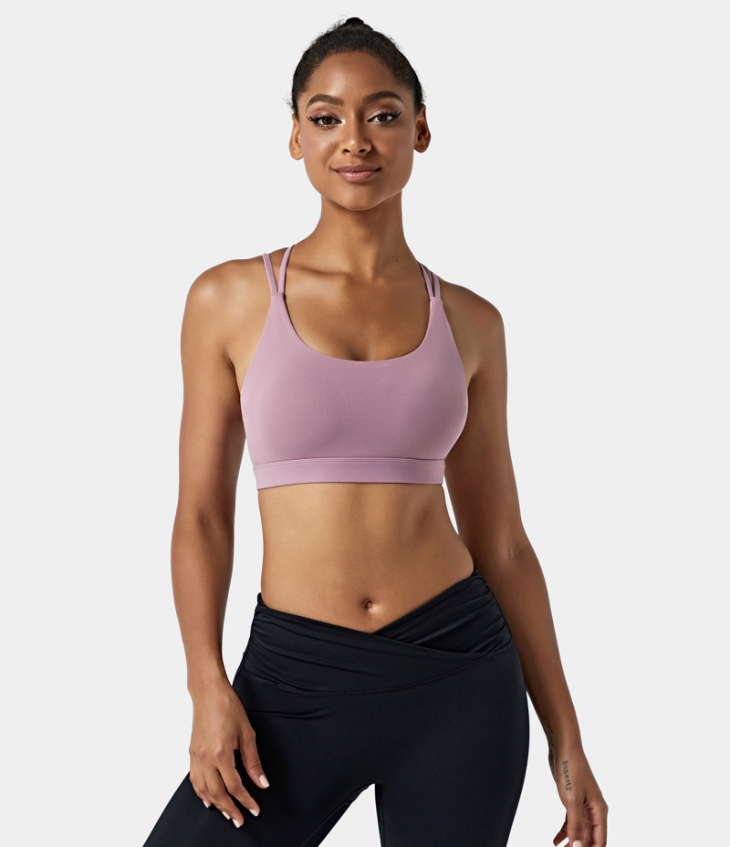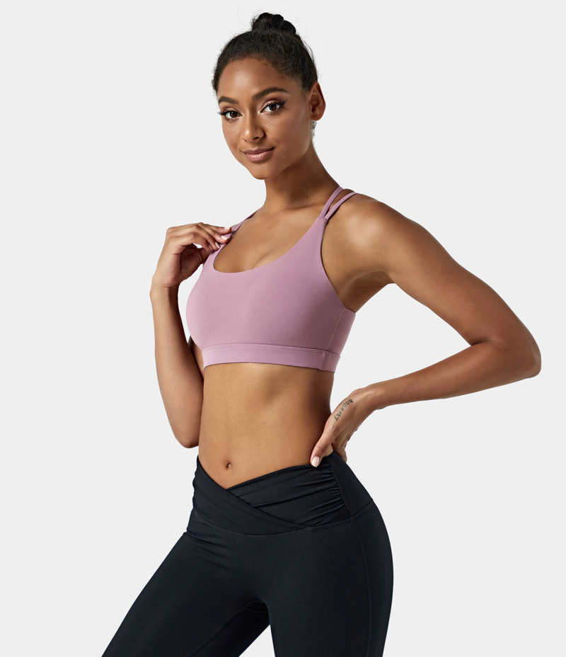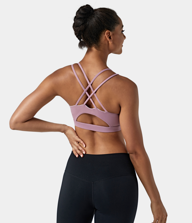 :: Halara Low Support Backless Crisscross Strappy Cut Out Yoga Sports Bra Women's Tops Ash Pink | HWPGLTB-21