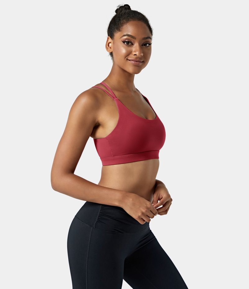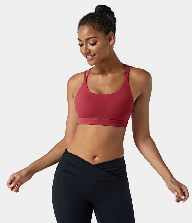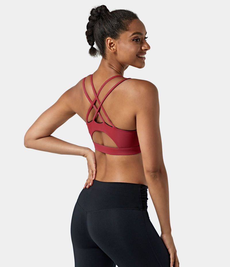 :: Halara Low Support Backless Crisscross Strappy Cut Out Yoga Sports Bra Women's Tops Blood Orange | DPAJVRH-52