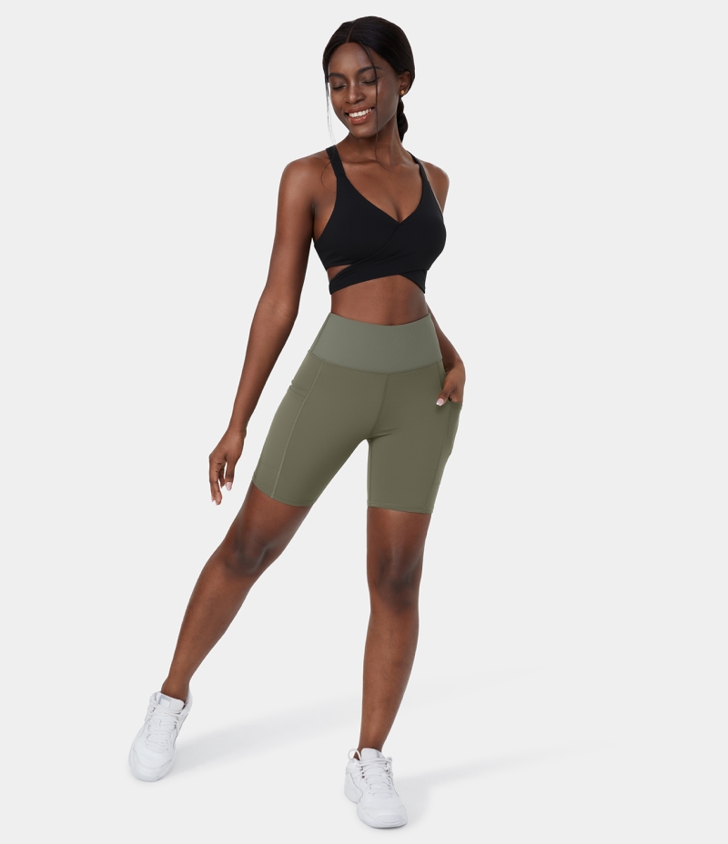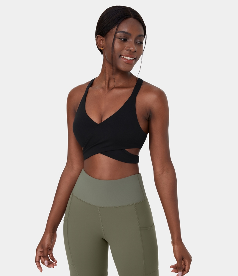 Halara Low Support Crossover Hem Cut Out Racerback Yoga Sports Bra Women's Tops Black | QYUAJVS-63
