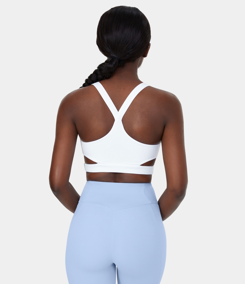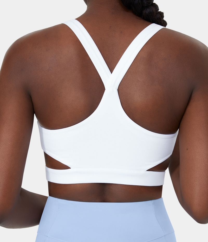 :: Halara Low Support Crossover Hem Cut Out Racerback Yoga Sports Bra Women's Tops White | KUXAEOD-82