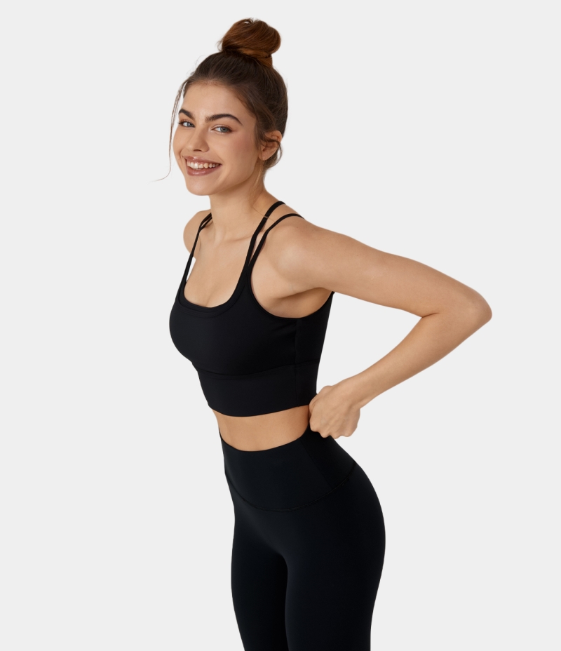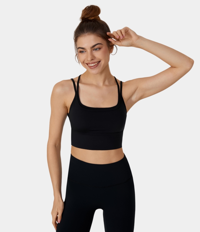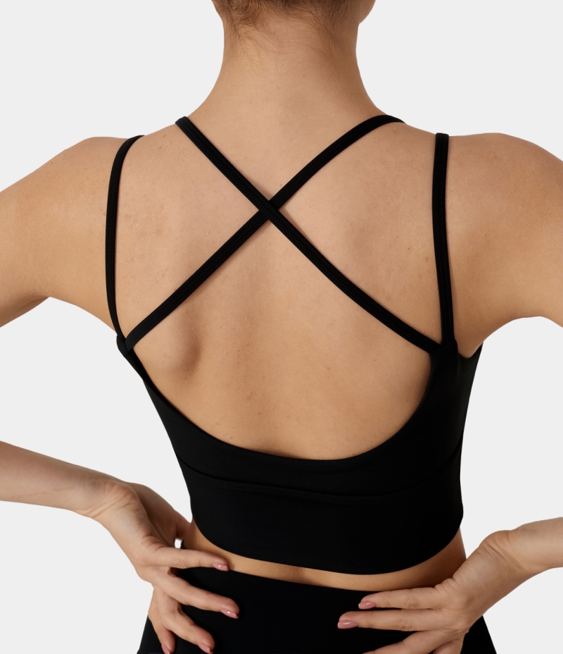 Halara Low Support Double Straps Backless Crisscross Barre Ballet Dance Sports Bra Women's Tops Black | SOJYIML-34