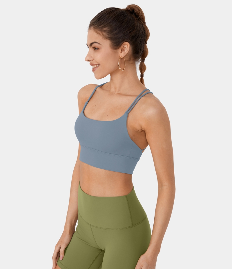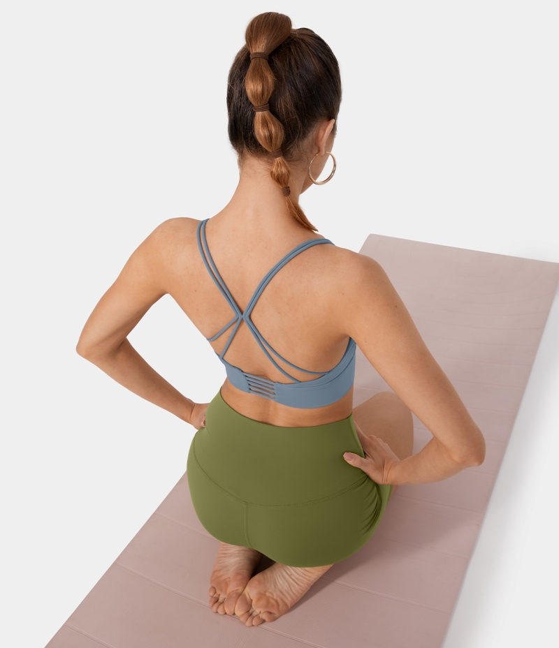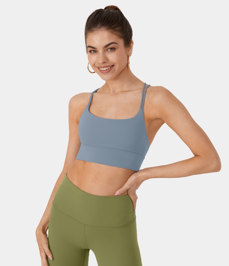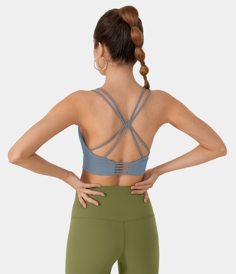 :: Halara Low Support Double Straps Backless Cut Out Yoga Sports Bra Women's Tops Rain Washed | IAWLZVJ-15