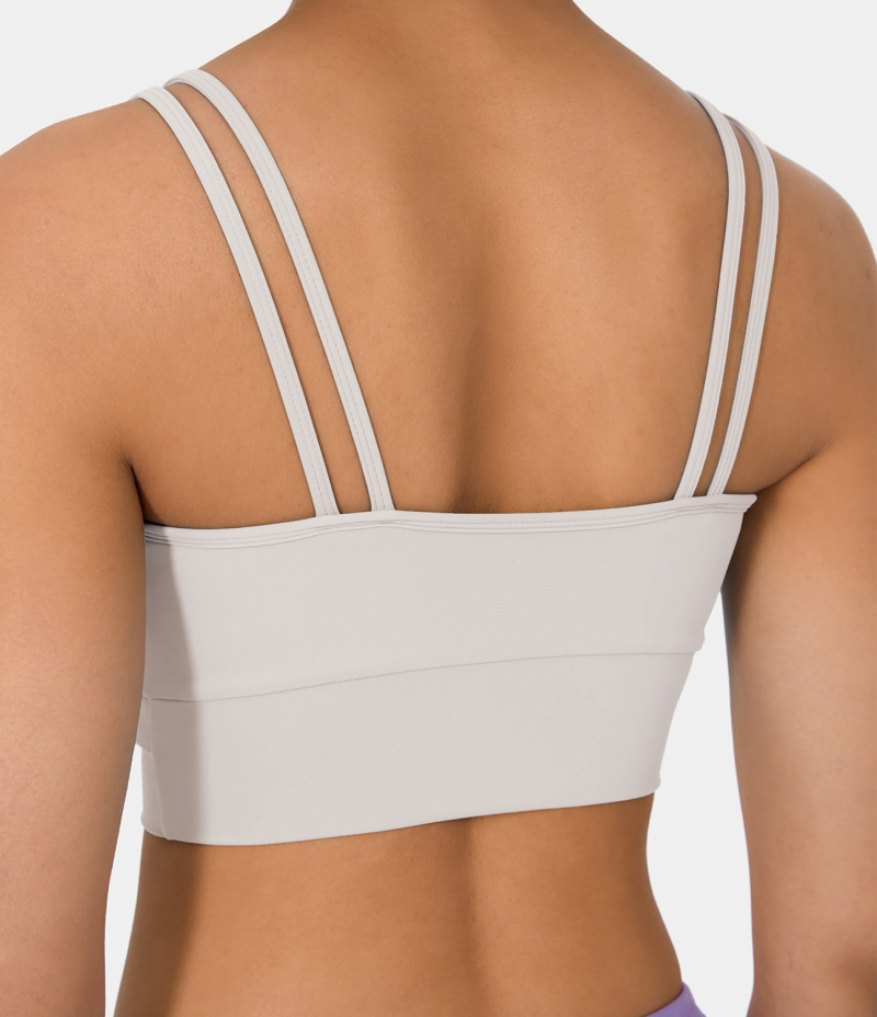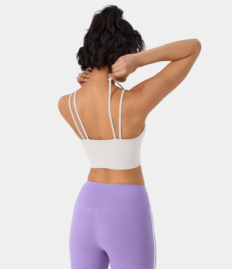 :: Halara Low Support Double Straps Twisted Barre Ballet Dance Sports Bra Women's Tops Blanc de Blanc | TLHGDAB-59